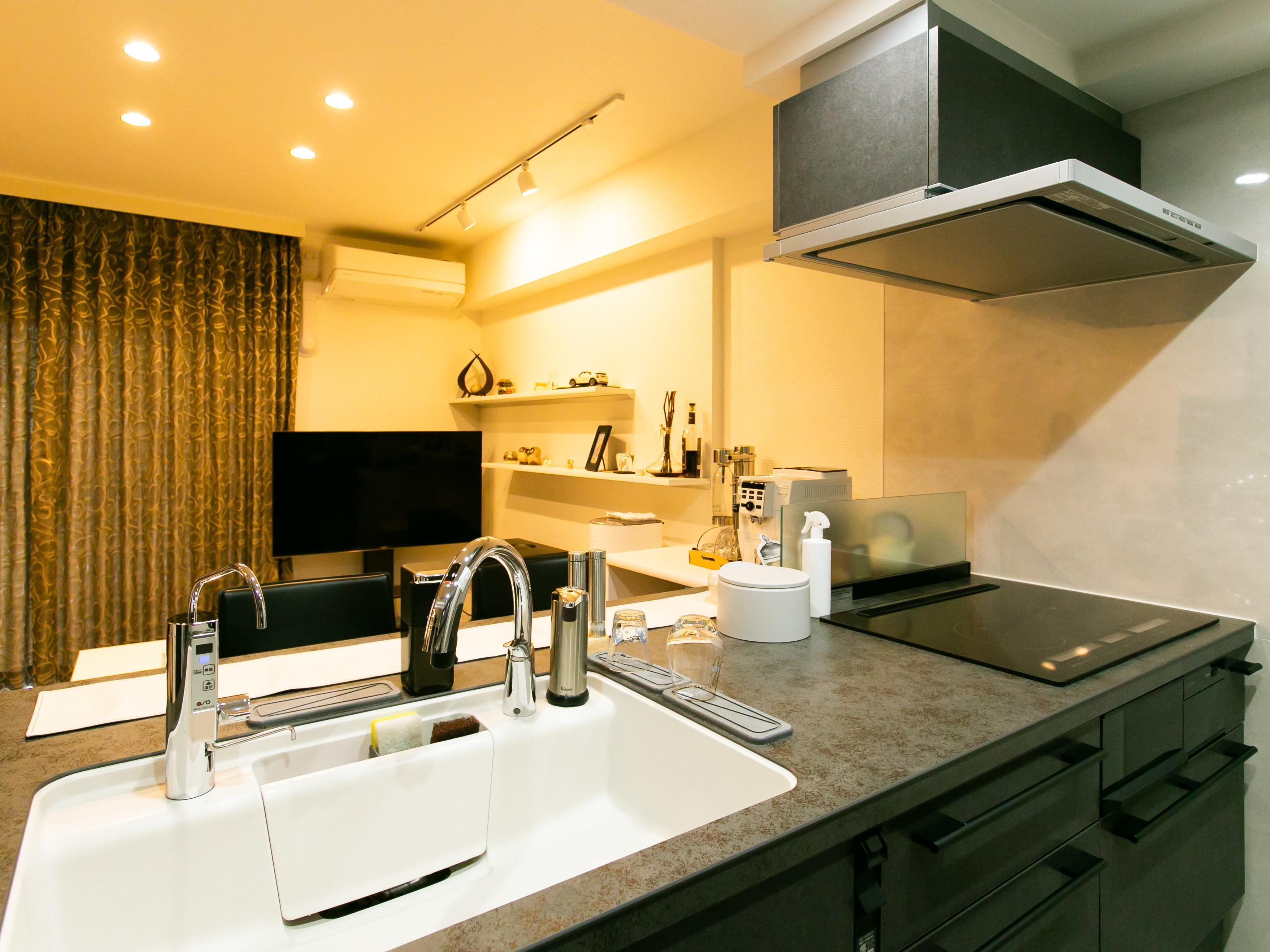 キッチンはLIXILの『リシェルSI』をご採用いただきました。リシェルSIと言えば、なんといっても「セラミックトップ」!熱・キズ・汚れに強いセラミックだからその美しさを長く保てるワークトップ素材で、焼き物ならではの色や質感が上質なインテリア空間を演出します。シンクも丈夫でキレイな「ハイブリッドクォーツシンク」で、毎日のお手入れラクラク♪手や物をかざすだけで水が出る「ハンズフリー水栓」で、調理も洗い物も効率的に。節水にもなります。テコの原理を応用して軽い力で開閉できる「らくパッと収納」は、ワイドに開くので中が見渡しやすく道具が取り出すやすい収納です。
