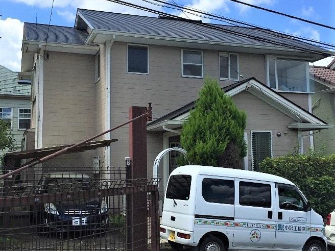 屋根と同様、外壁もバイオ高圧洗浄を行いました。洗浄の後、下塗り・中塗り・上塗りと3回塗りで塗装します。