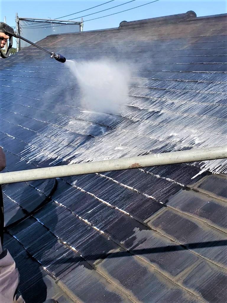 カビやコケ・藻を分解する薬品を使用して洗浄する「バイオ高圧洗浄」を行いました。しっかり汚れを落とすことで下地にしっかり塗料を付着させることができるようになり、これで塗料の性能を十分に引き出して屋根や外壁の寿命を引き延ばすことができます。