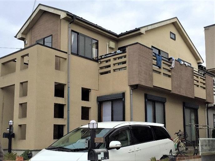 現調に伺った際、外壁にひびなどの劣化が起きており、下地補修が必要な状態でした。下地補修を施した後、塗料を3回塗りで外壁塗装を施工しました。外壁の劣化を放置すると、雨などの侵入を防ぐことができなくなります。今お住まいの家に長く住むために、定期的に点検やメンテナンスを行うようにしましょう。