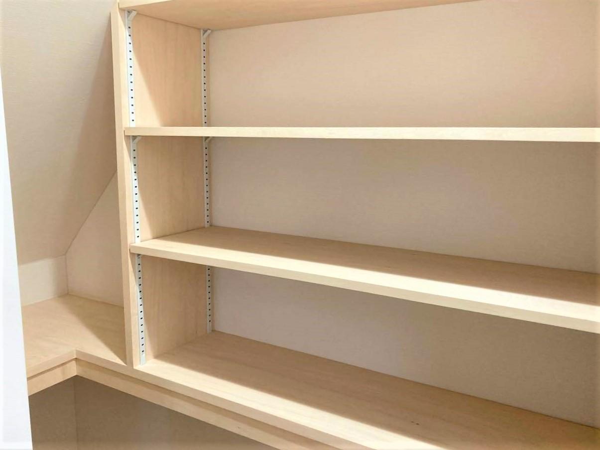 パントリーには可動棚を取り付けたので収納する物に合わせて高さを変えることができ、とても便利です。