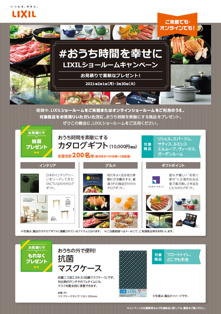 キャンペーン期間中、LIXILショールームにご来館またはオンラインショールームをご利用になり、