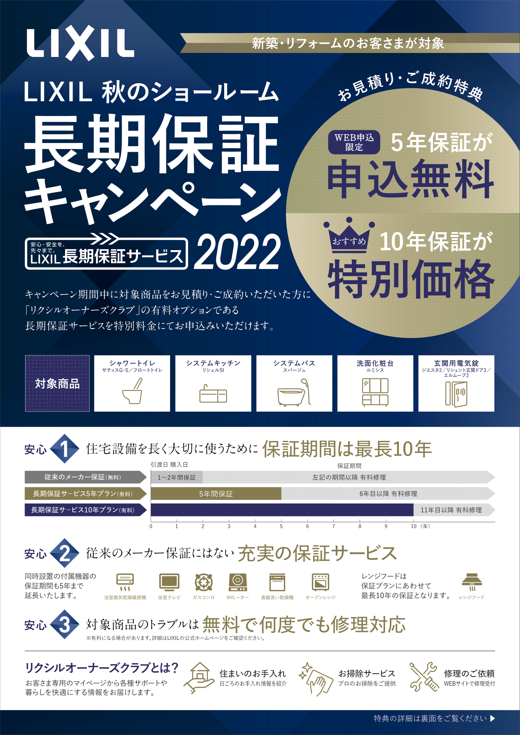 LIXILではただ今「秋のショールーム長期保証キャンペーン2022」を開催しています。