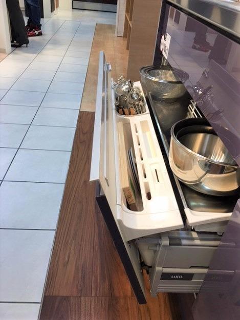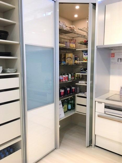 こちらは、キッチン横の空いたスペースに付けられる収納。