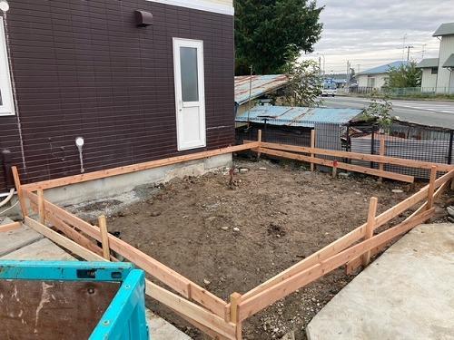 建てる場所の位置や基礎の高さを決めていきます。![]()