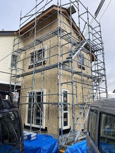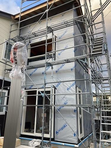 外壁を貼る下地や断熱施工をし、![]()
