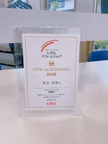 LIXILの認定する「リフォームコンシェルジュ」に