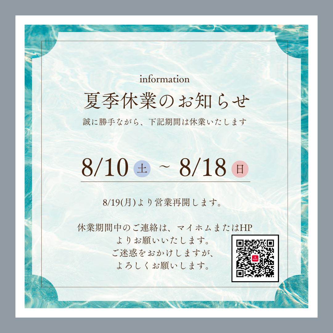 8月19日(月)より営業再開いたします。
