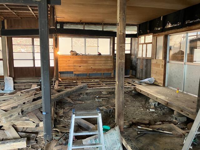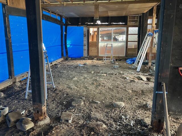 今後は、防湿シートを敷き土間にコンクリートを流し込んで湿気を抑える工事になります。