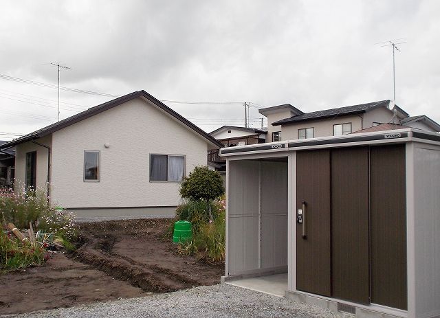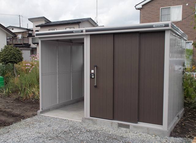 空きスペースに、物置を設置しました。ご趣味の自転車の収納も出来るよになりました。