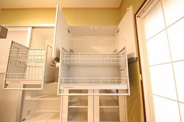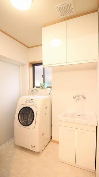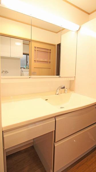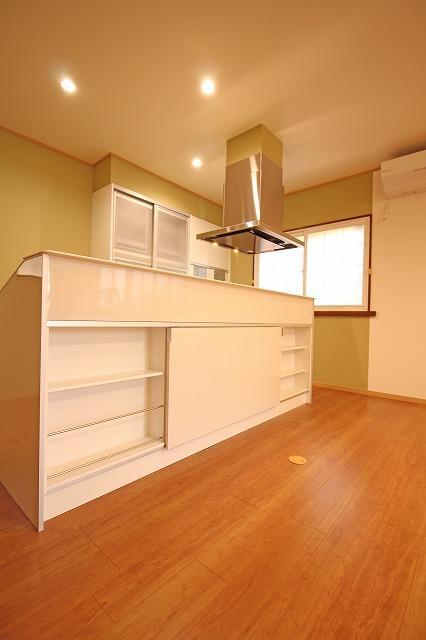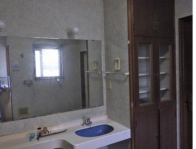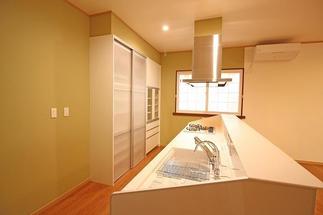 元々壁で隔たれていたキッチンとリビング。壁を撤去することによって、足りなくなってしまう強度を天井でしっかり補強。アイランドキッチンはリビング側に収納が付いているので、散らかるキッチン周りもスッキリ保てます。全体が見渡せて、家族が揃って集まれる広々空間が出来上がりました。他にも古くなった洗面と脱衣室、バスルームも新しいものに。動線も考え、清潔感が溢れる明るい水廻りへ。