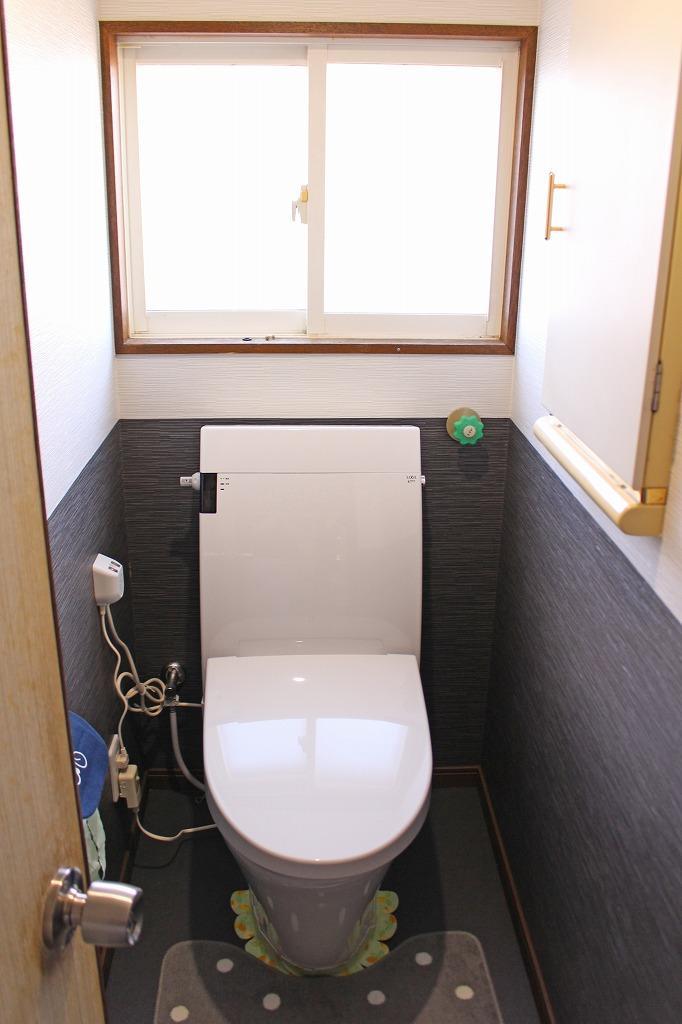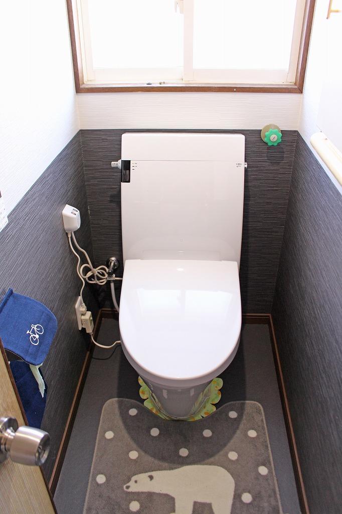 浄化槽の設置をきっかけにトイレを交換!タンクがあるタイプの中でもスタイリッシュなフォルムのLIXIL「アステオ」に交換。床とクロスも張り替える事でガラリと空間が変わりました。