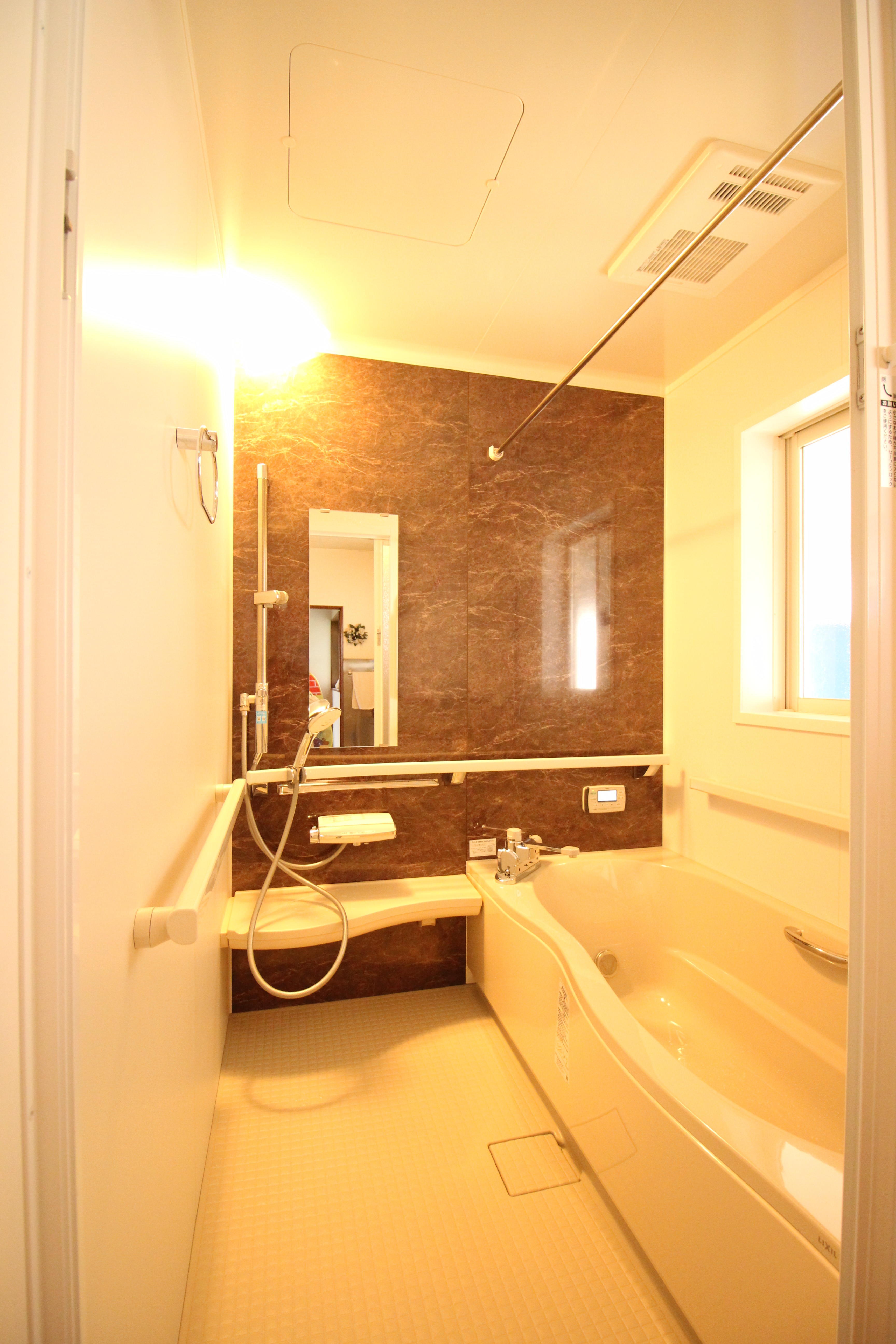 今までのユニットバスは劣化とお掃除のしにくさが気になっていたそうです。同じサイズの新しいユニットバスに交換。広々と入浴できる浴槽に、床は汚れが付きにくく乾きやすい構造で、カウンターは外せてまる洗いできるので毎日のお掃除しやすくくなりました。ユニットバス内には便利な浴室乾燥機と、ぐるっと手すりを配置することで、足の不自由な方も動きやすくなります。断熱もしっかり施すことによって、快適なバスルームになりました。