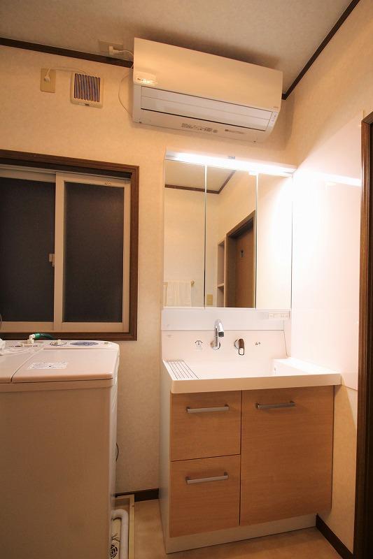 水まわりを今後のために新しくしたいとのご相談を受け、リフォーム工事をさせていただく事になりました。新たなユニットバスは寒冷地にピッタリの保温浴槽でお湯が冷めにくく、工事の際には断熱をプラス。洗面化粧台は以前のものより収納量の多いものに交換いたしました。寒かった洗面脱衣室にはエアコンを設置し、冬場の厳しい寒さの中でも快適に入浴ができるようになりました。