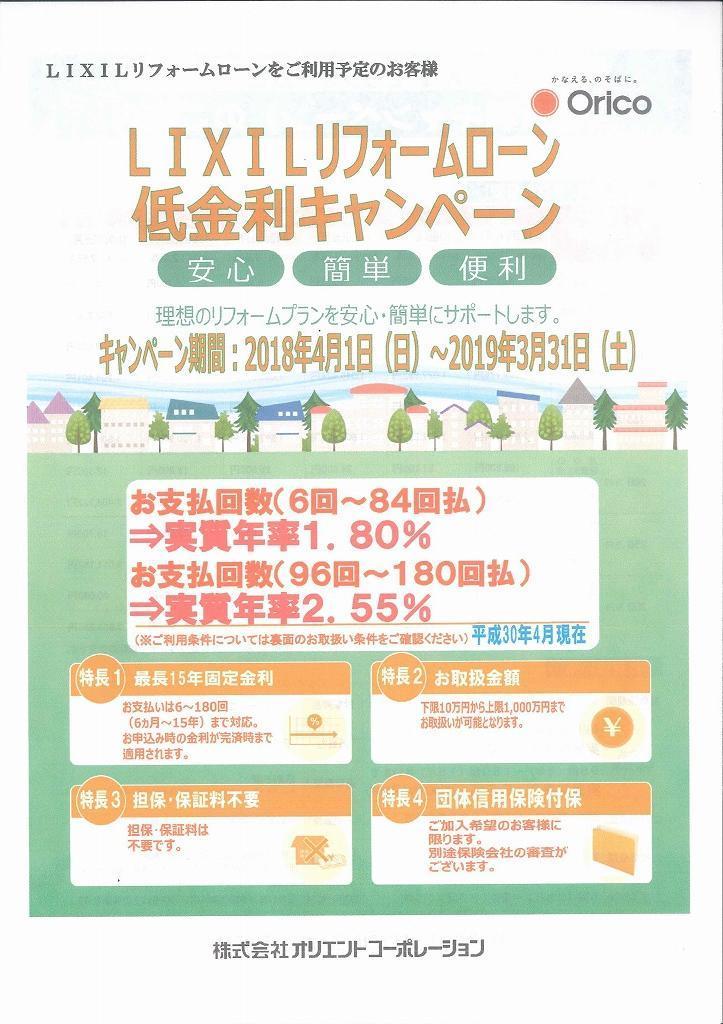 LIXILリフォームローン低金利キャンペーンが始まりました。
