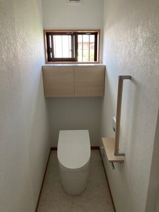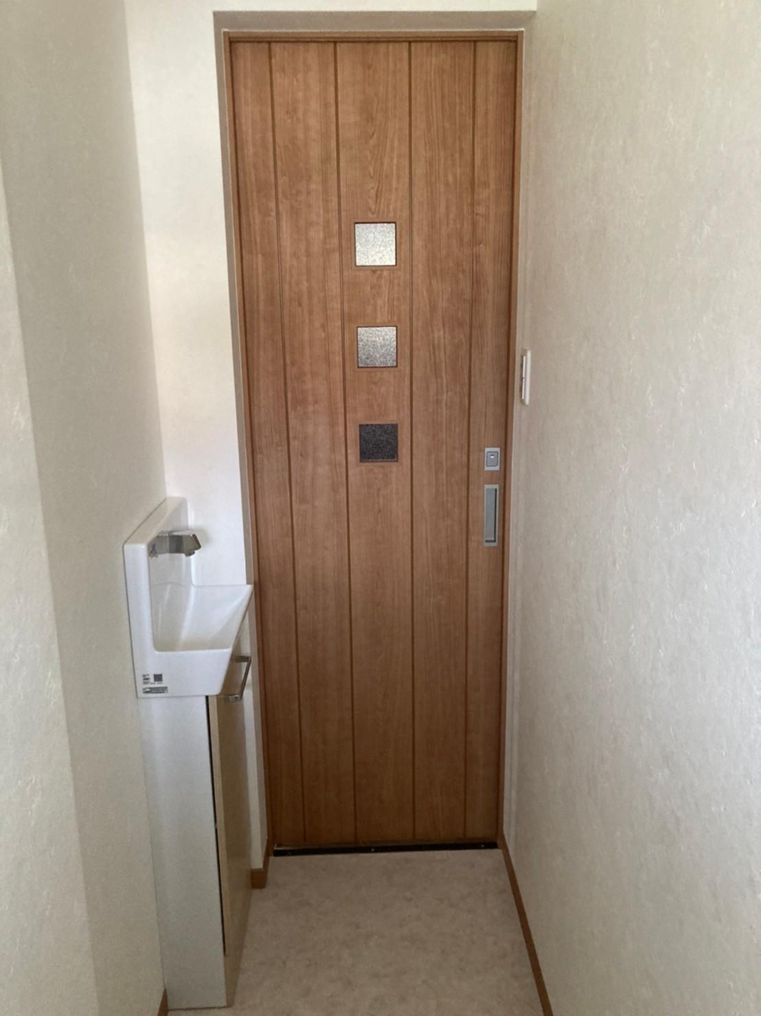 元のトイレスペースより少し狭くなっているが、スッキリ感を重視し、 となりの浴室の広さを最大限に重視いたしました。