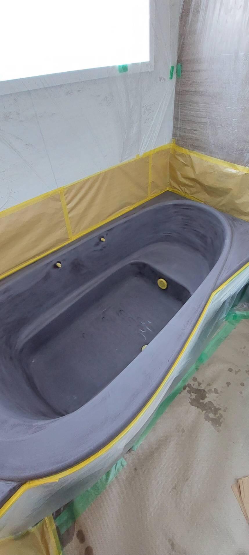 浴槽にキズや浮きがあり、水漏れの心配がありました。もうあと、10年は使いたいという思いがあり、今回漏れのないように再塗装をしました。一度、剥離をして丁寧に仕上げまで行いました。