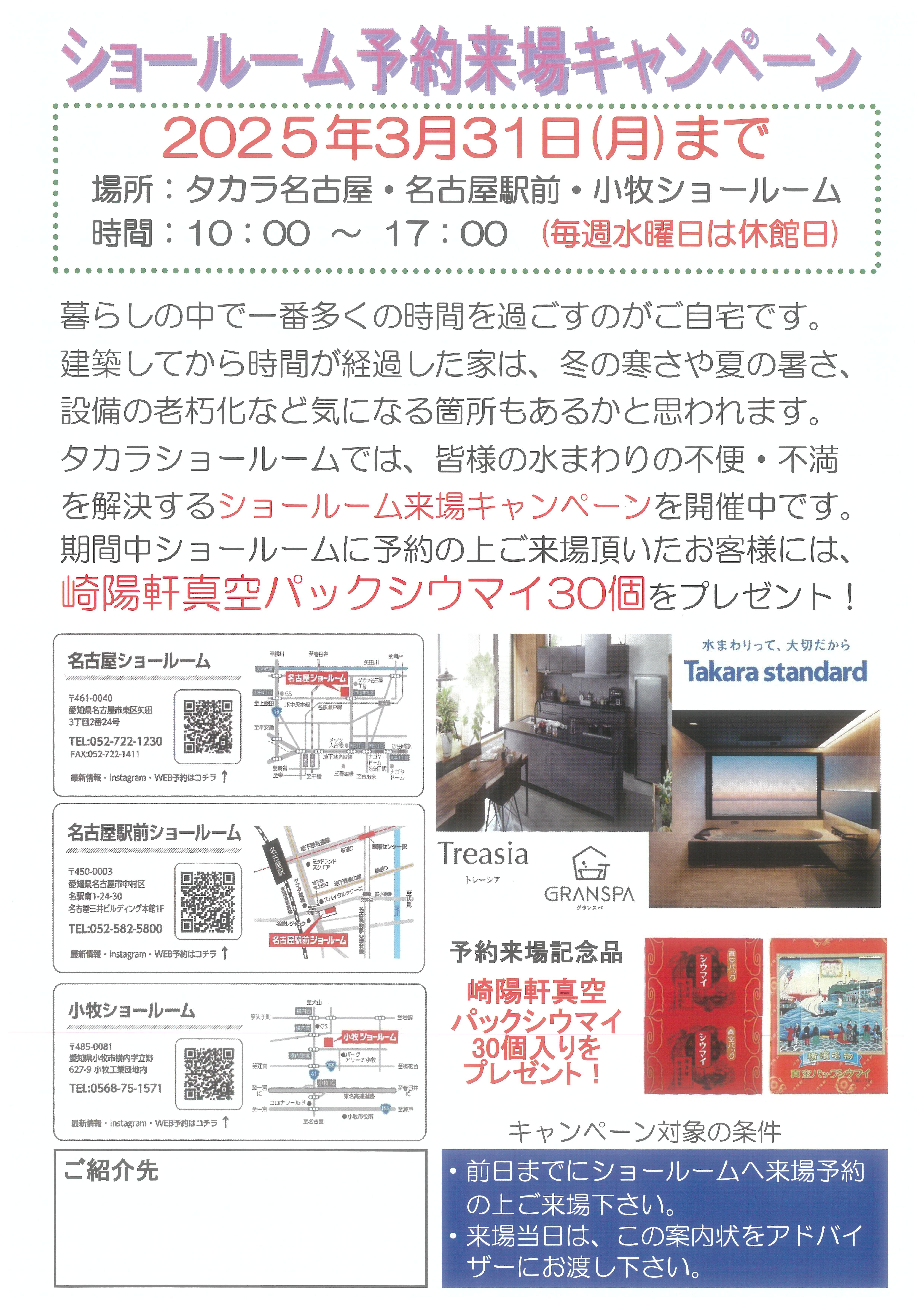 Takara standard ショールーム予約来場キャンペーン のお知らせ