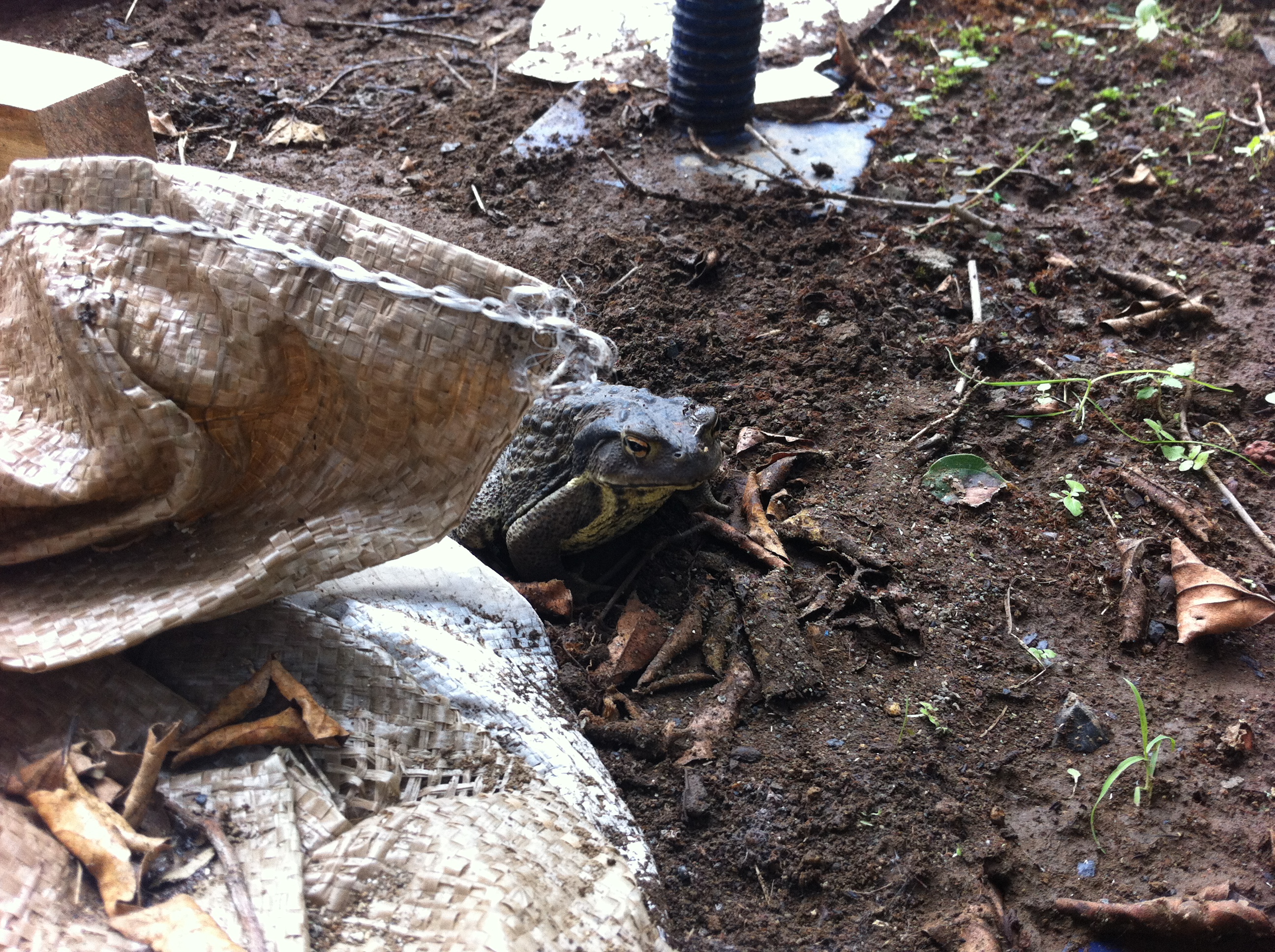 雨 ☂ も降り、ジメジメしていたのでブルーシートの下に大きいカエルがいました( ゚∀ ゚)