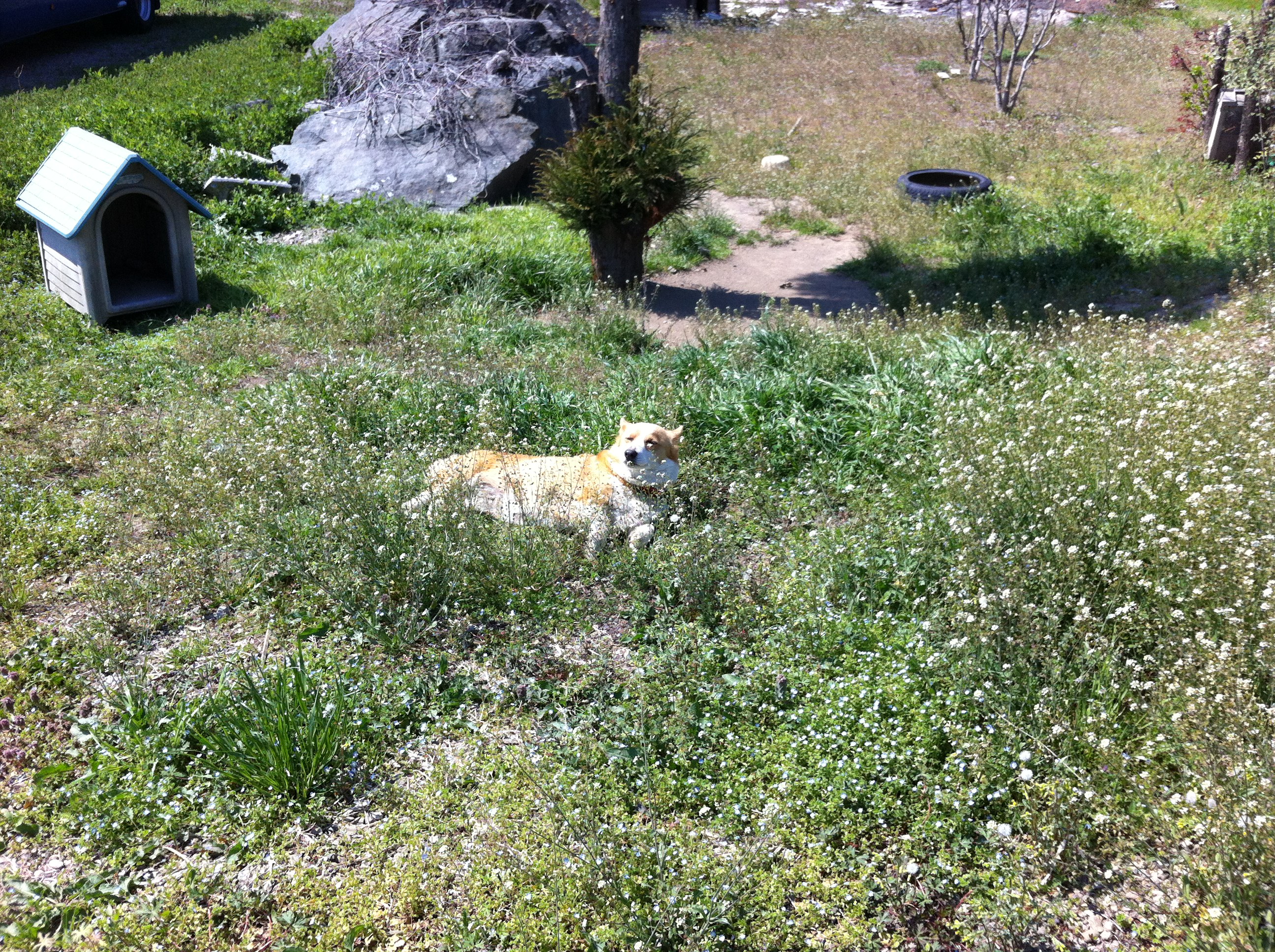 日中は外でつないでいるのですが、夜はハウスにて就寝してます