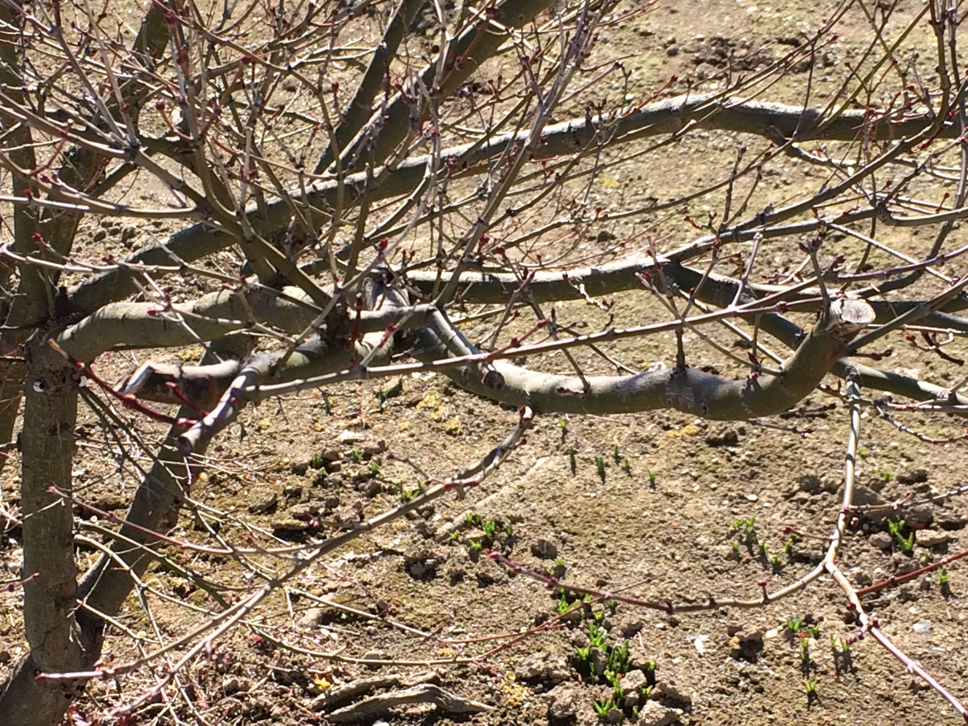 庭木の下に緑色の葉が沢山顔を出していました