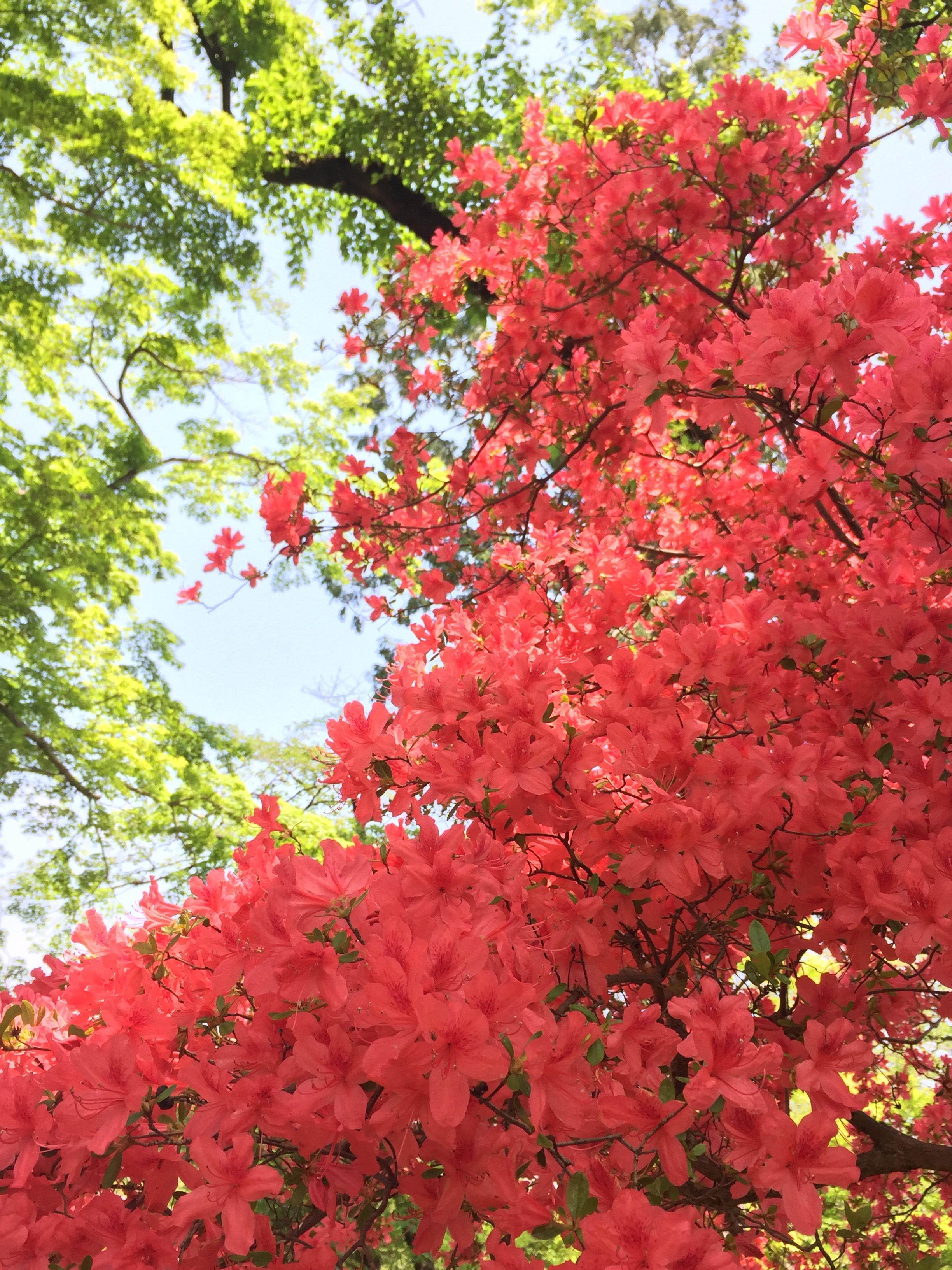 空が明るくて木や花の色が鮮明で