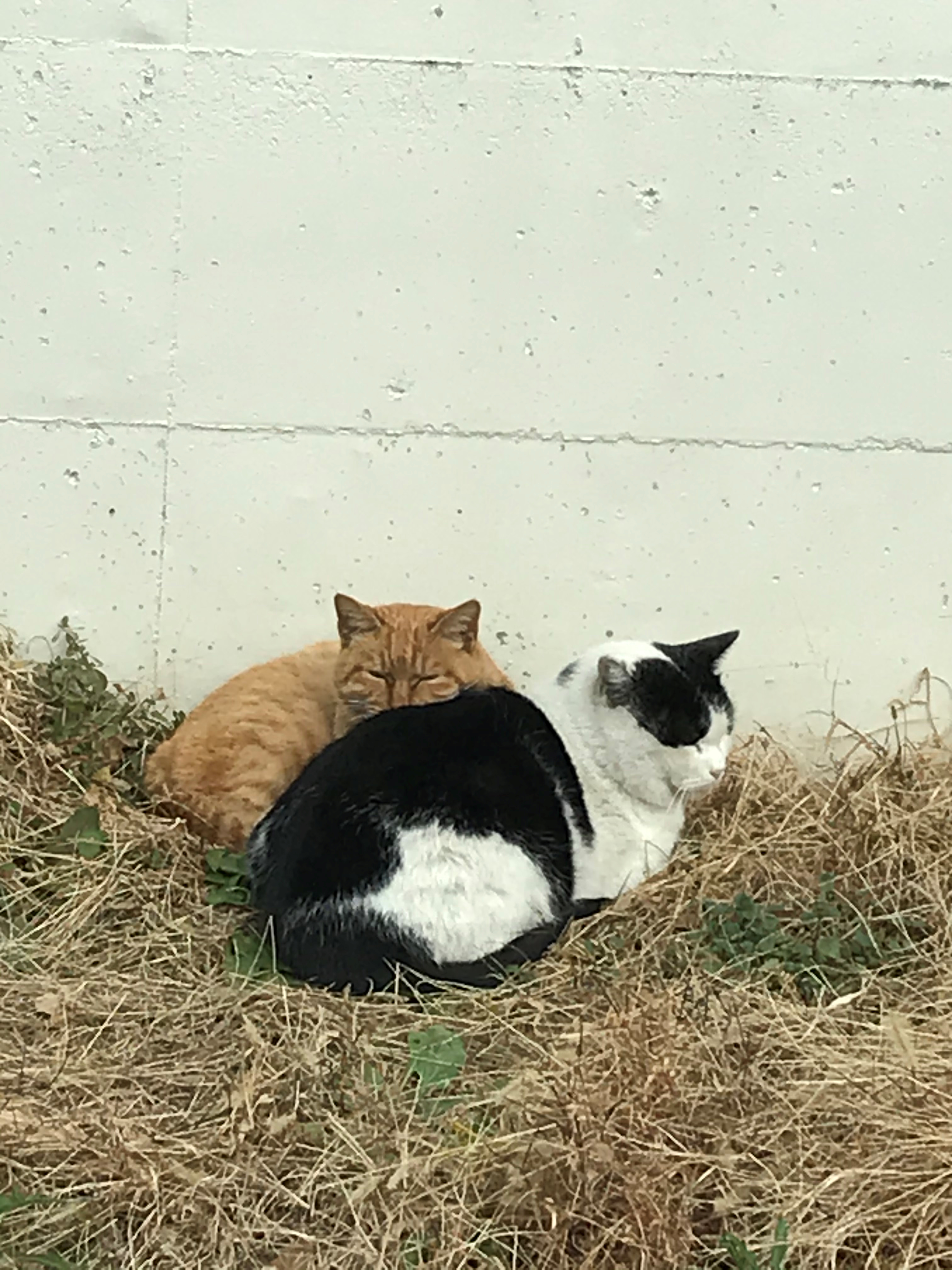 駐車場の端にニャンが2匹