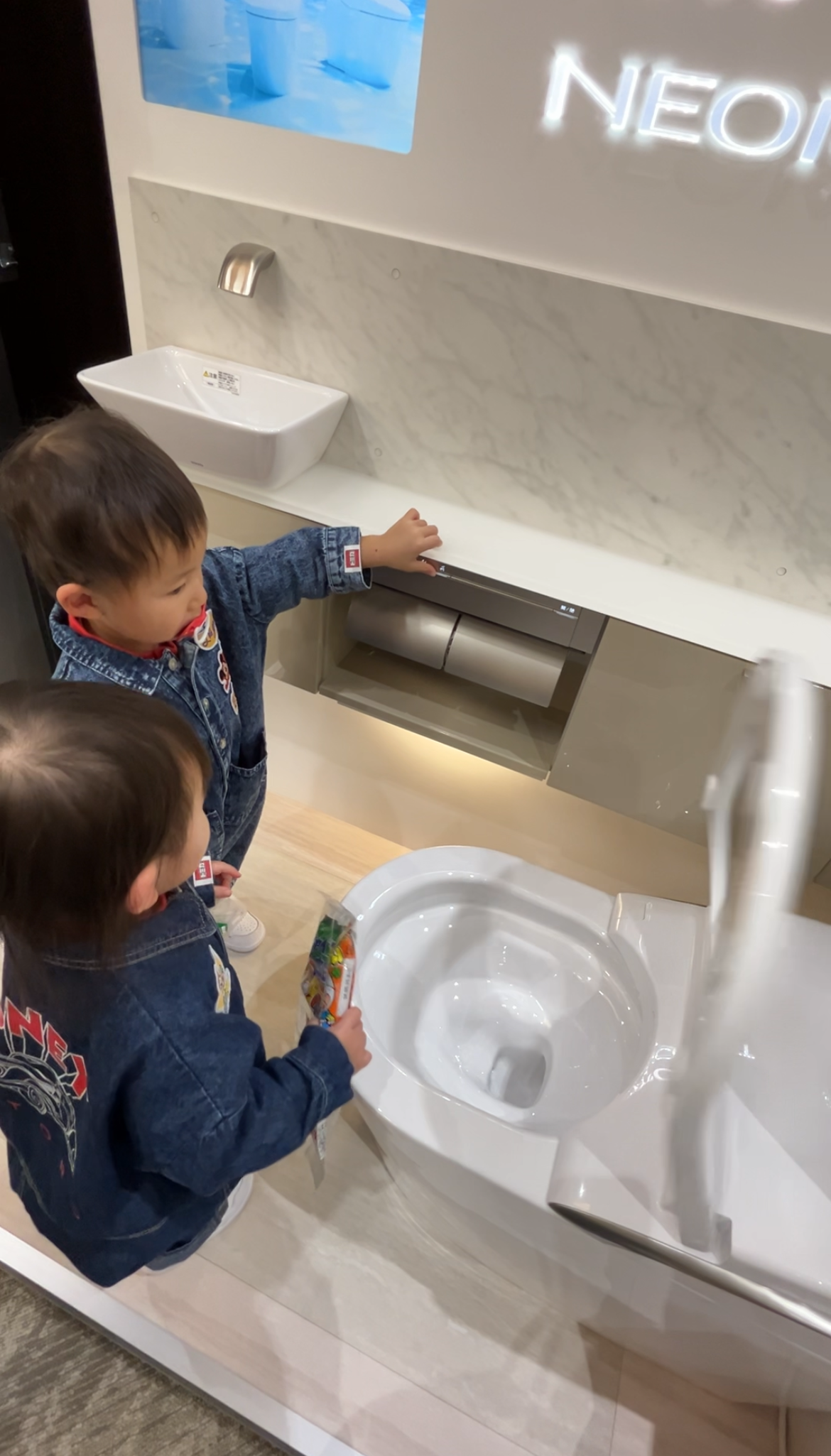 そして子どもたちは、やっぱりトイレの展示に夢中。笑