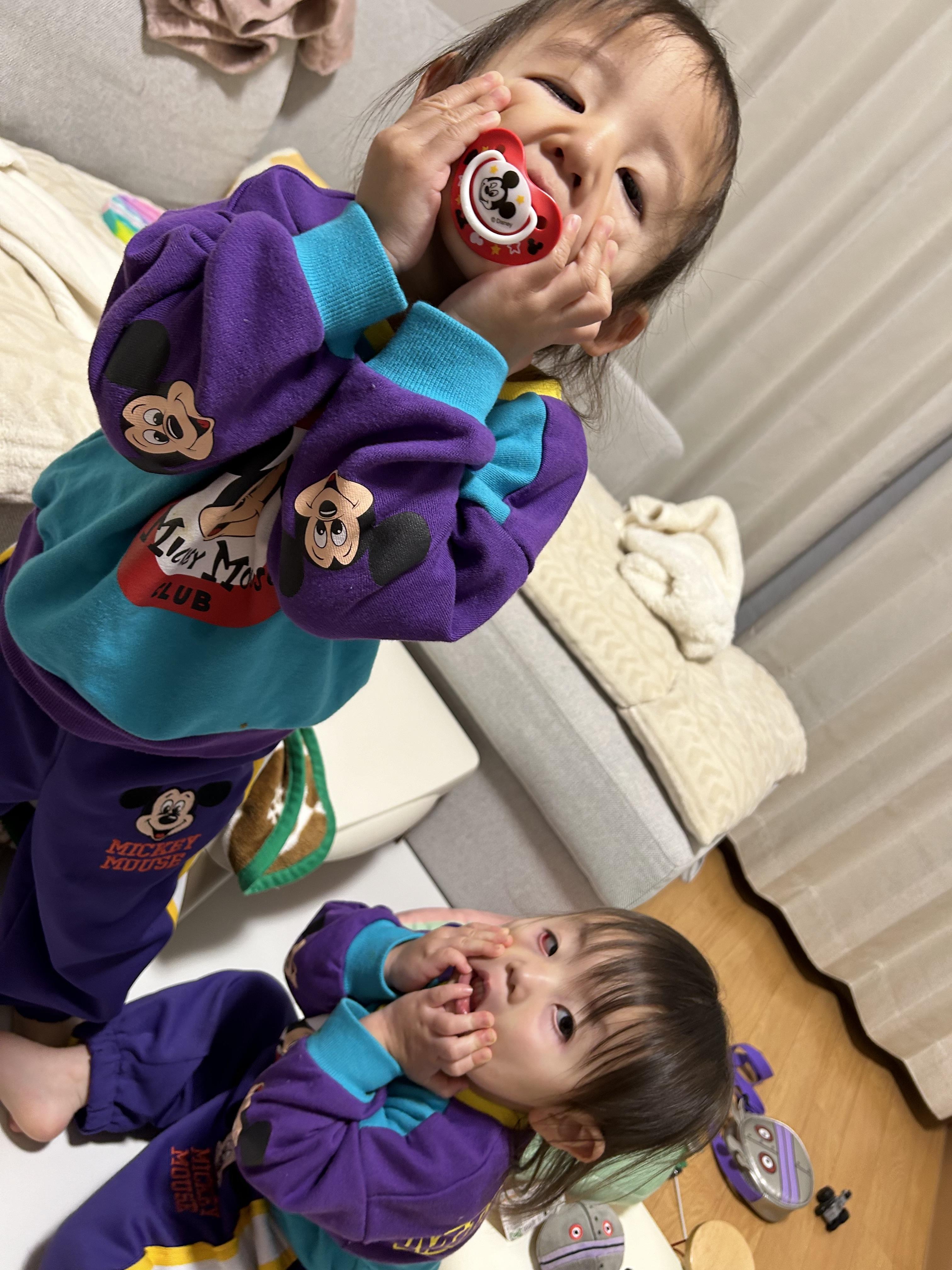 着替えよう~というと「イヤイヤ~」と逃げ回りますが