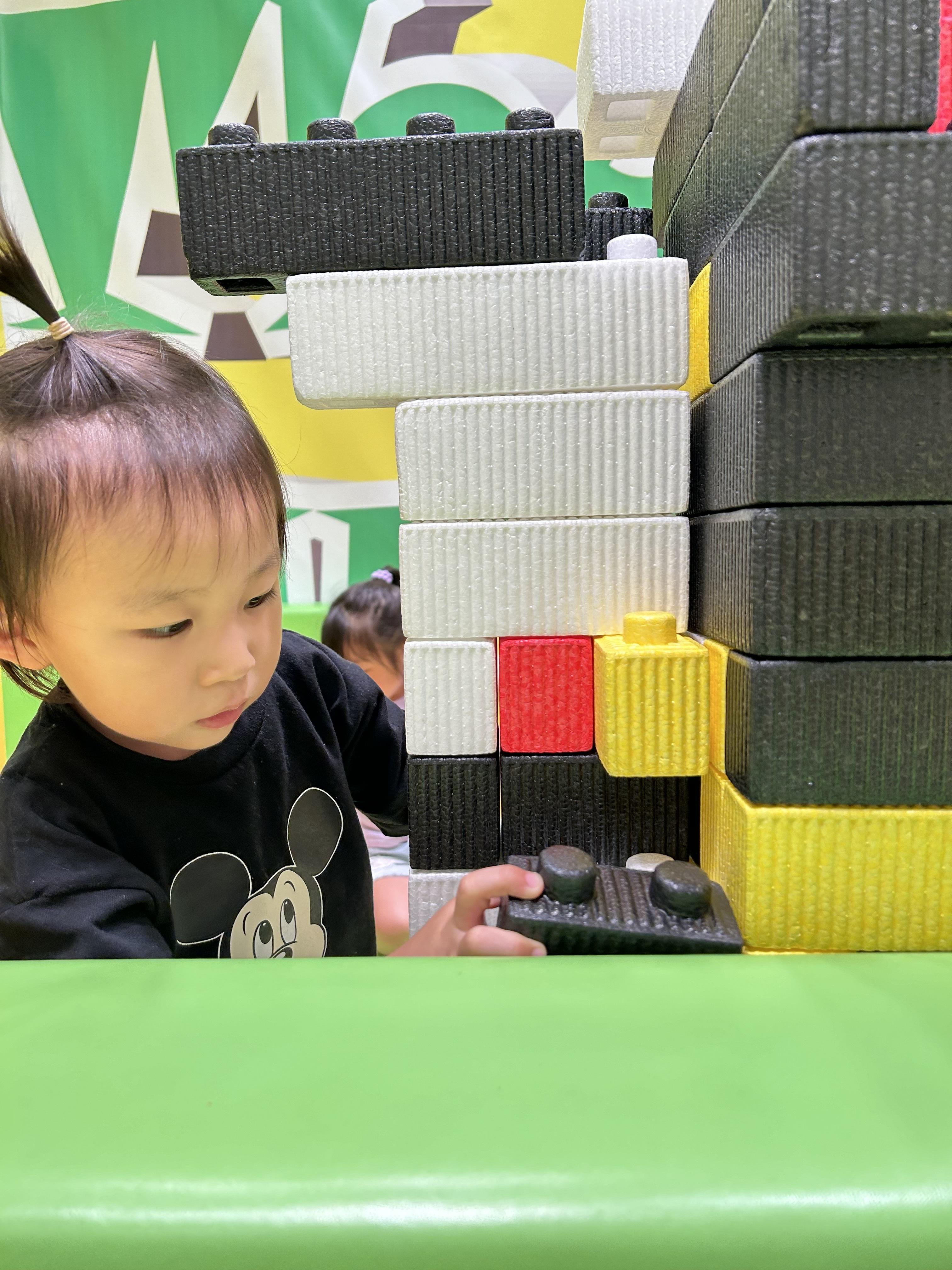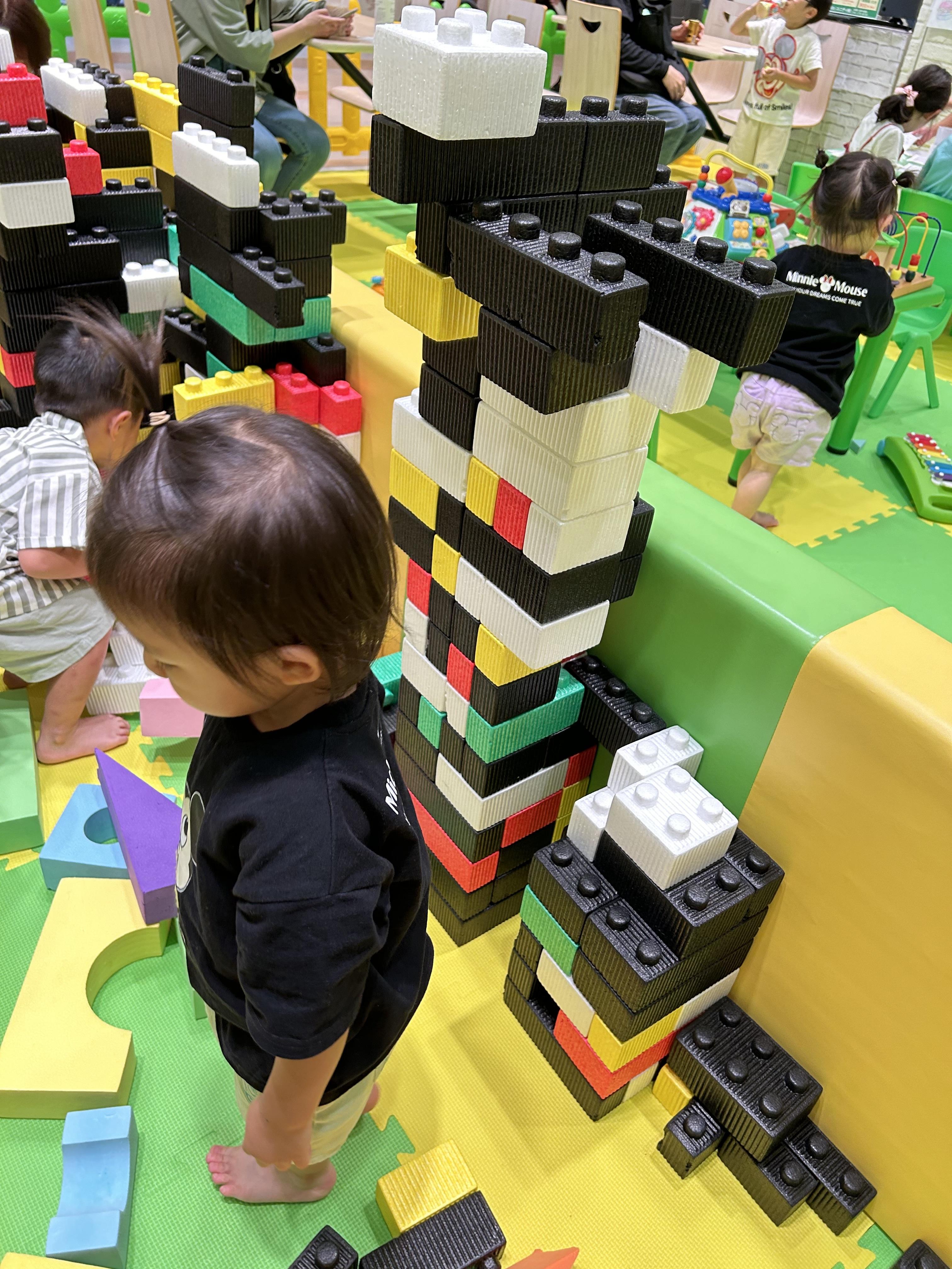 息子がブロックを積み上げて遊んでいたので