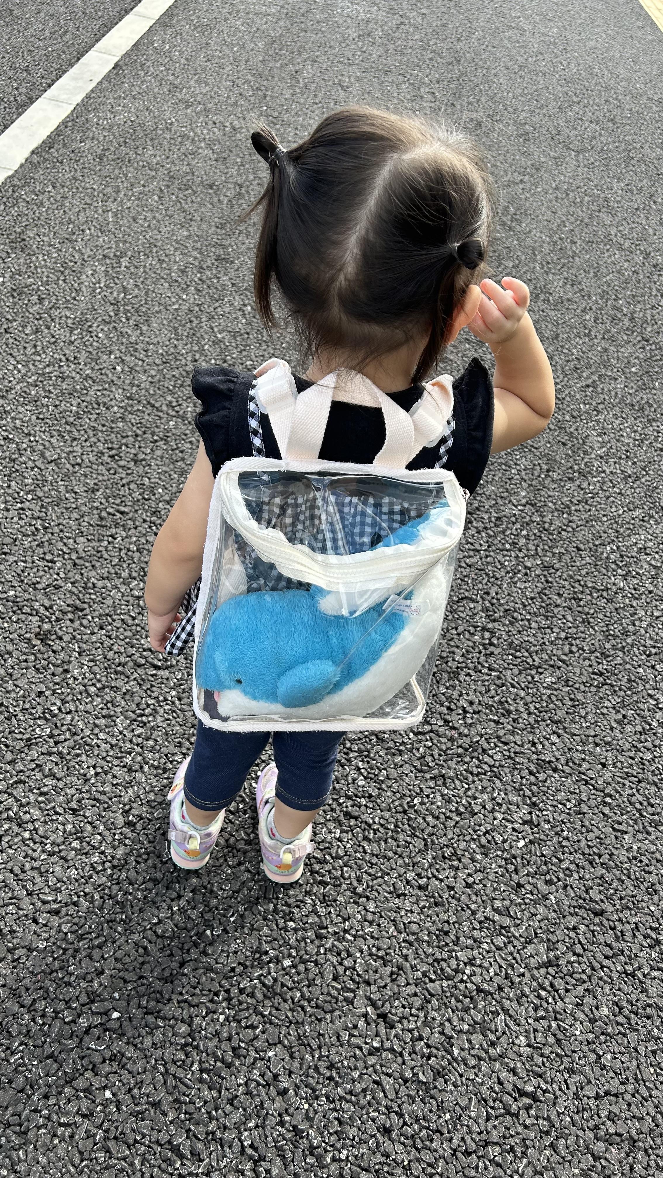 そんな今朝は、娘がイルカの人形をリュックにいれて連れて行くと聞かず・・・![]()