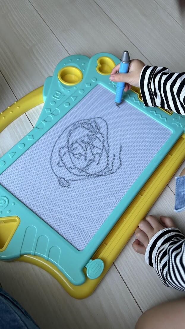 今まではグルグルと書くだけだったのが、少しずつ"丸っぽいもの"が書けるようになりました。