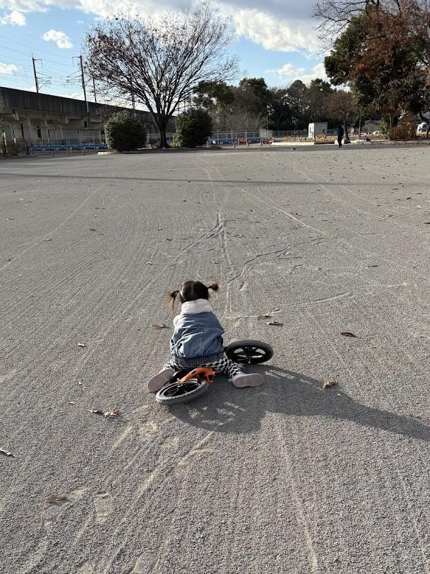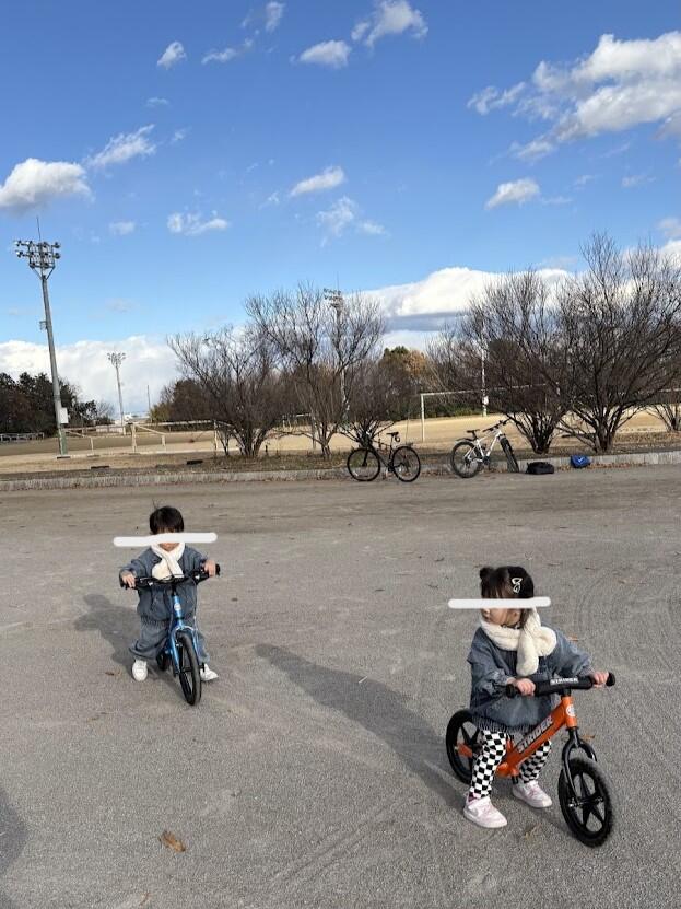 それから、遊具エリアの奥には広い場所があったのでストライダーの練習もしました!![]()