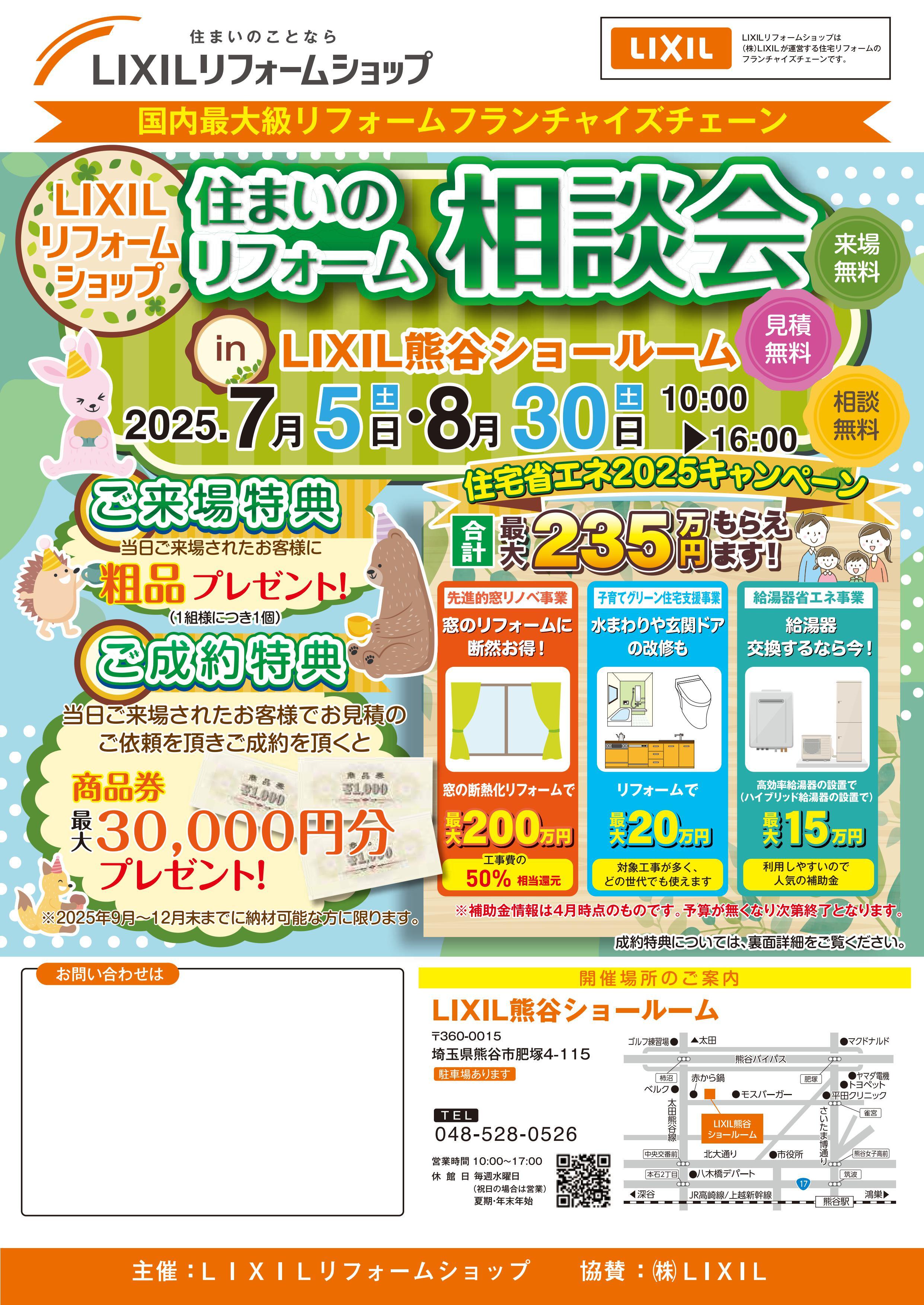 いよいよ今週末、7月5日(土)に『住まいのリフォーム相談会』が開催されます!