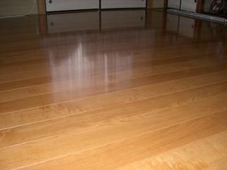 K様邸より和室の畳をフローリングに変更したいとのご依頼を頂きました。現状の柱の色と合わせ仕上げています。 床:東洋テックス ミディアムチェリー色