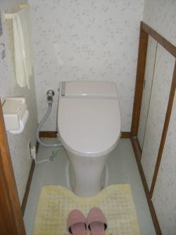 O様邸のトイレをINAX サティスリトイレでリフォームしました。INAXのリトイレシリーズは排水位置を変えずに施工できるため工事費を抑えることができます。 トイレ入替:INAX サティスリトイレ D-S415AH/SR5 オフホワイト色CF張替え