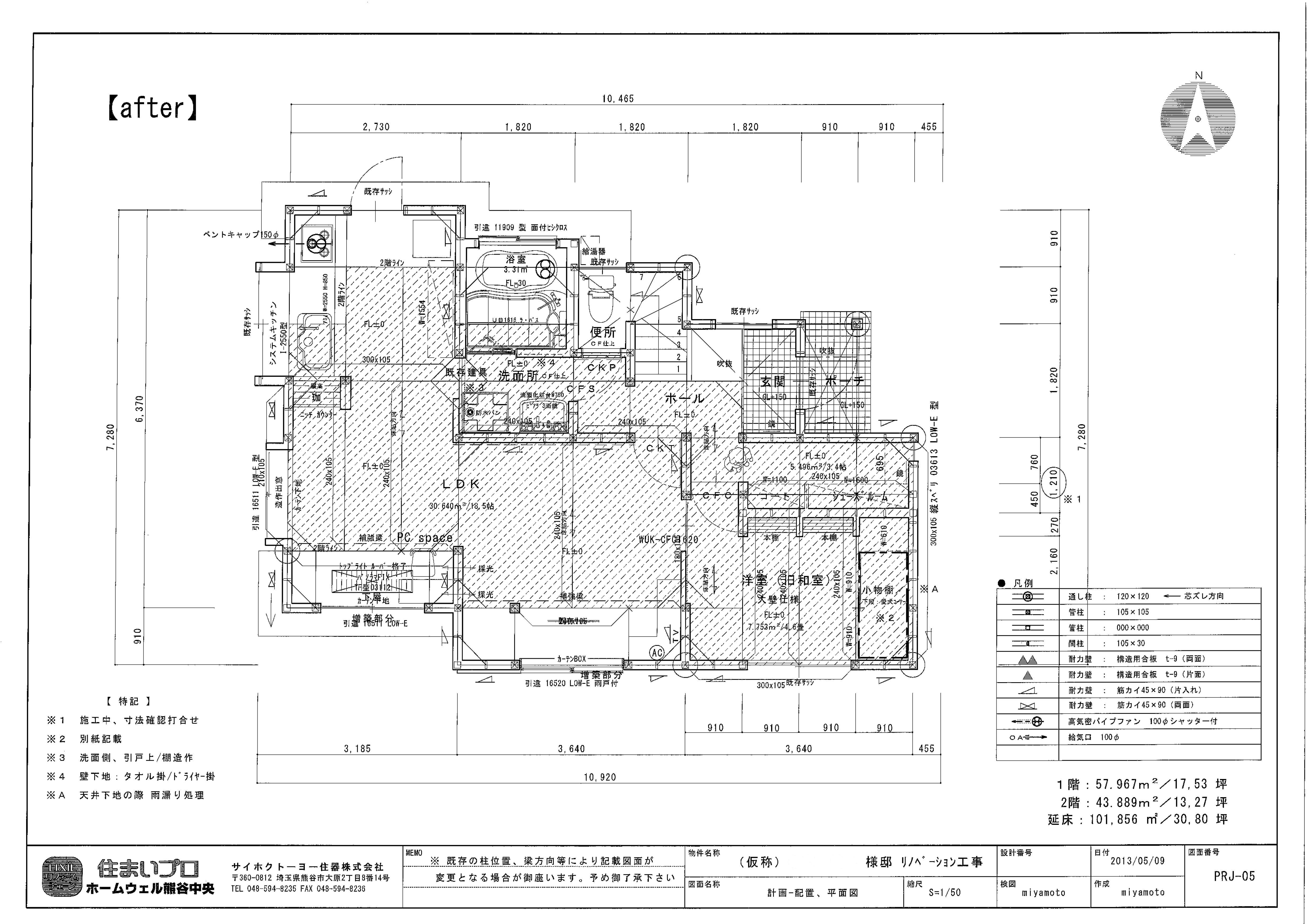 平面図に仕上材や設備機器などを書いていきます。間取図はあたたかみのある手書きです(・∀・)。(プラン-LIXILさいたまショールーム 木佐貫さん)