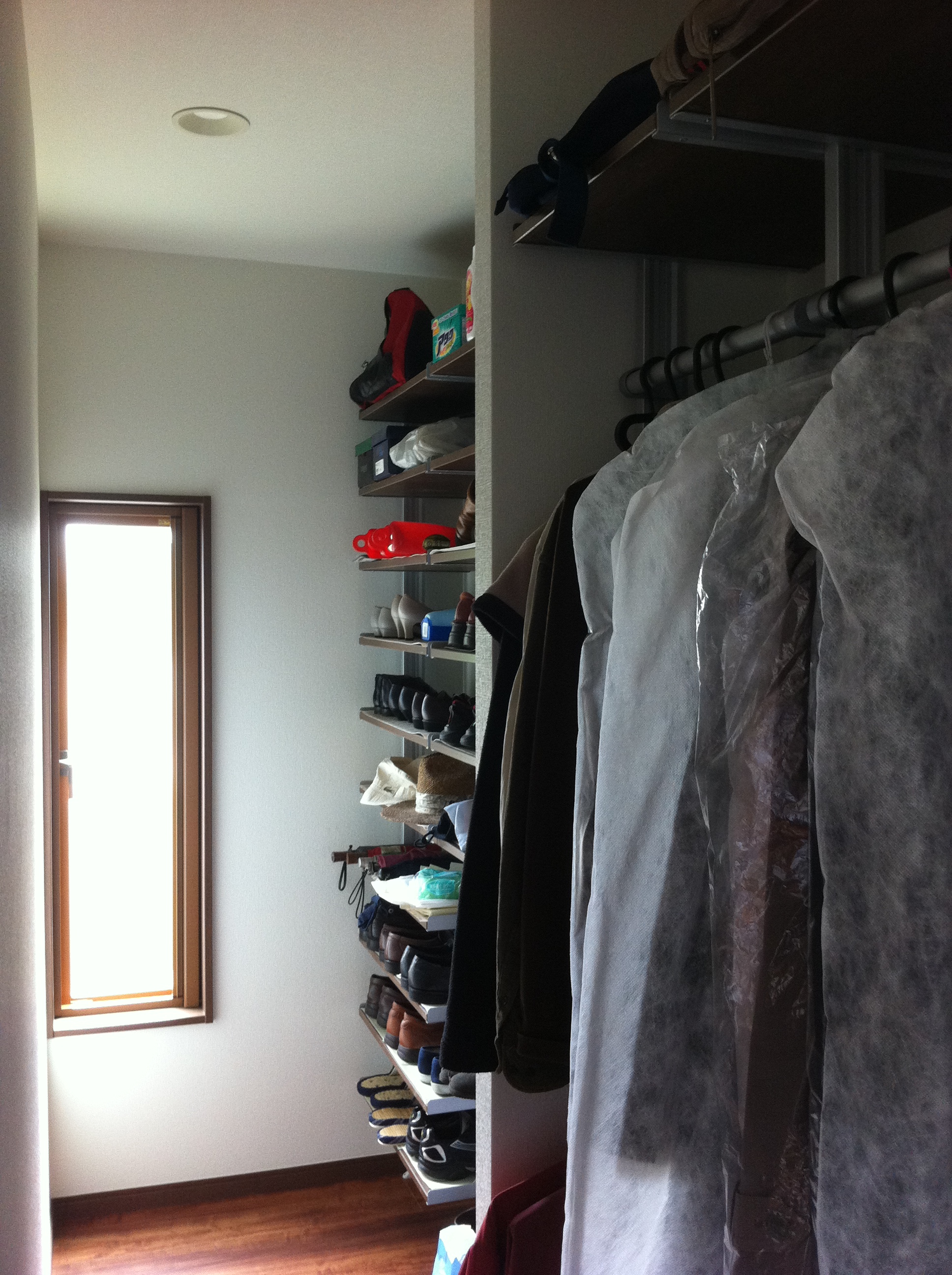 玄関脇のシューズルームです。玄関からは見えないので来客の際でも安心して収納して置けます。