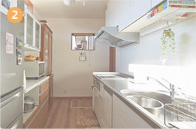 元々は:離れ:として建てられた家ですが、将来的に本家の機能を持たせられるように、ご兄弟の方やご親族が集まれる家を考えました。そこで、天井が高い広いリビングを中心にした間取りを検討。明るさや風通しにもこだわって設計致しました。天井の高いリビングを実現する為に、勾配のある屋根を作りました。採風や採光については、各所に窓を設置。玄関や勝手口には、網戸を内蔵したドアを採用することで風の通りが格段に良くなりました。
