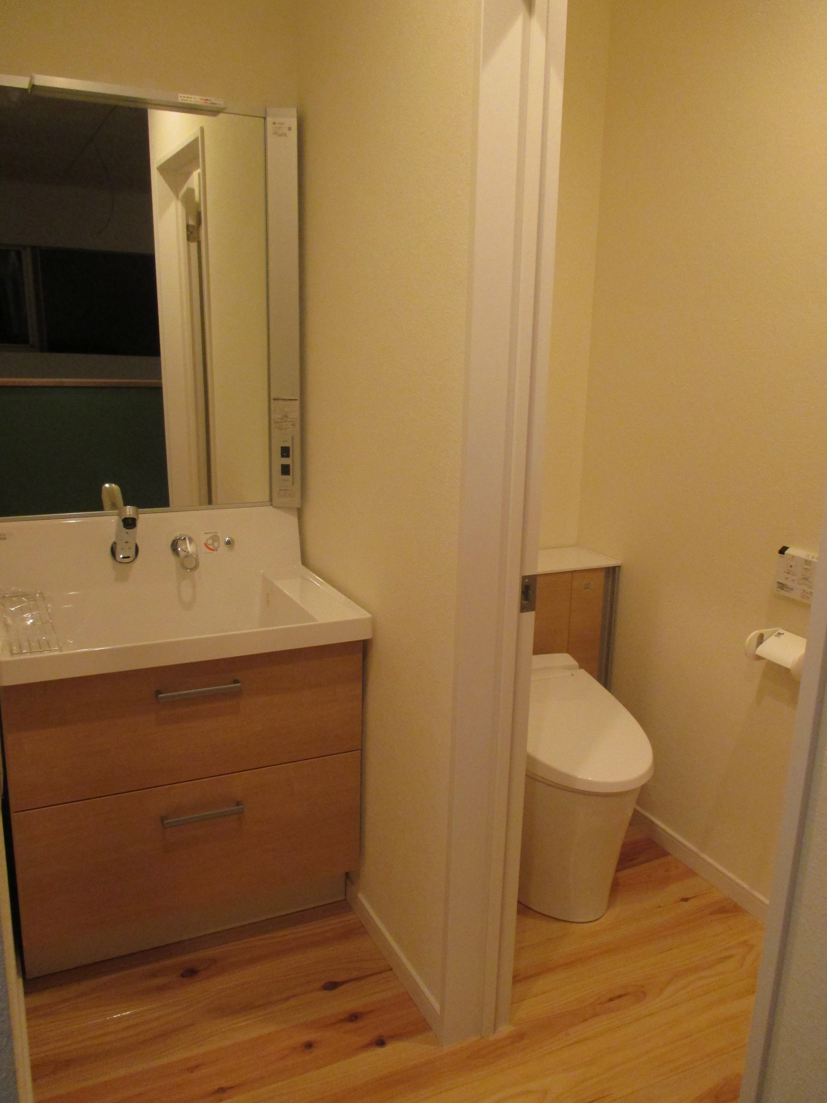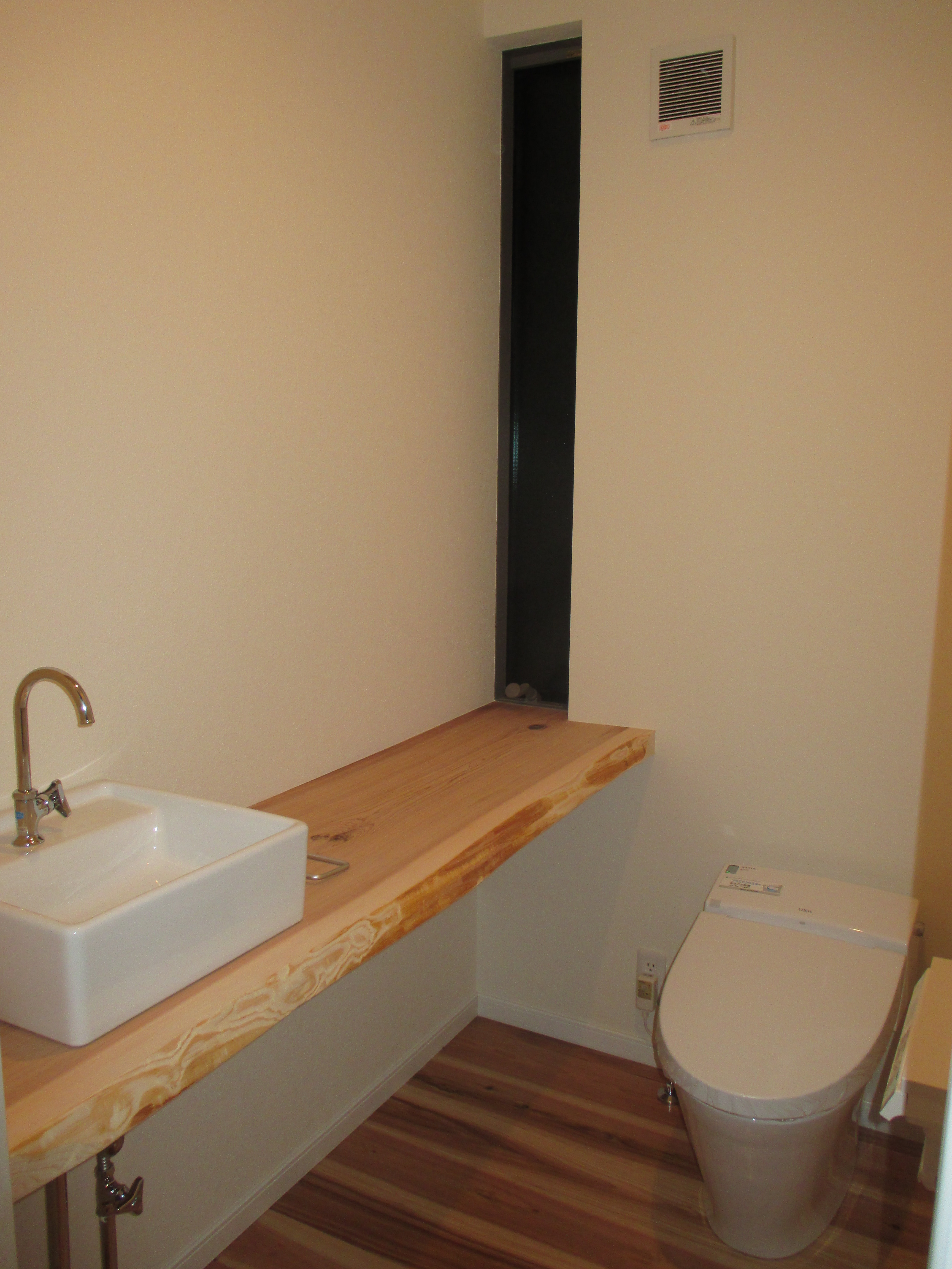 ケヤキを削り直し再利用しました。天井はシナ合板仕上げです。