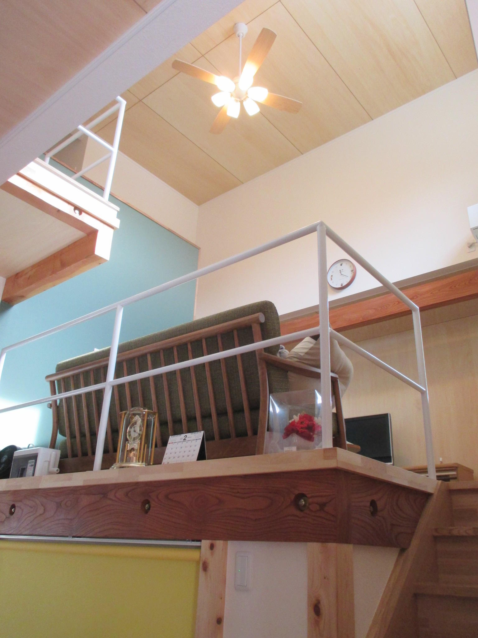 リビングの隣は中二階となっています。中二階の下は収納となっています。中二階は天井が高くゆったりと過ごせる空間となっています。