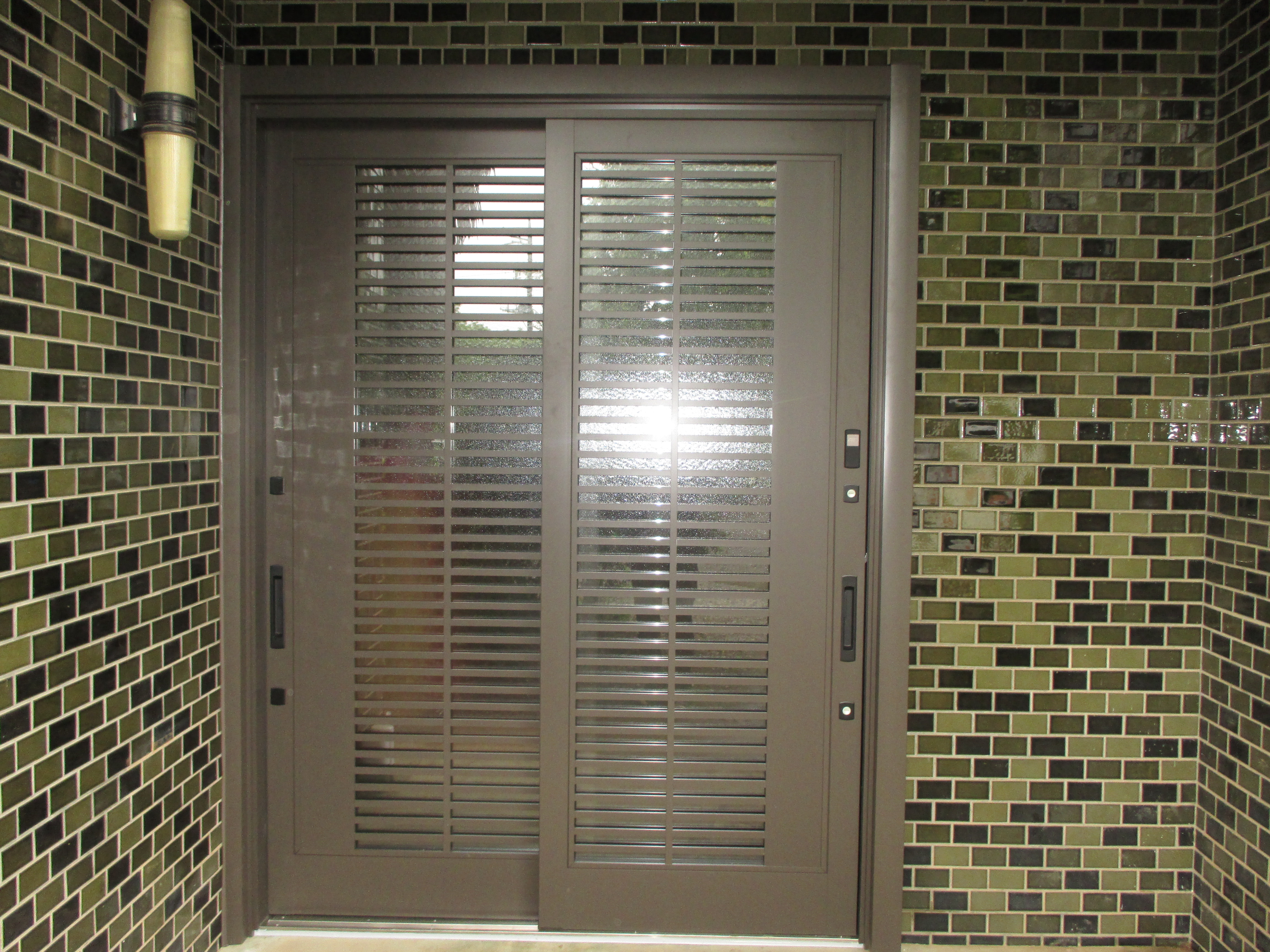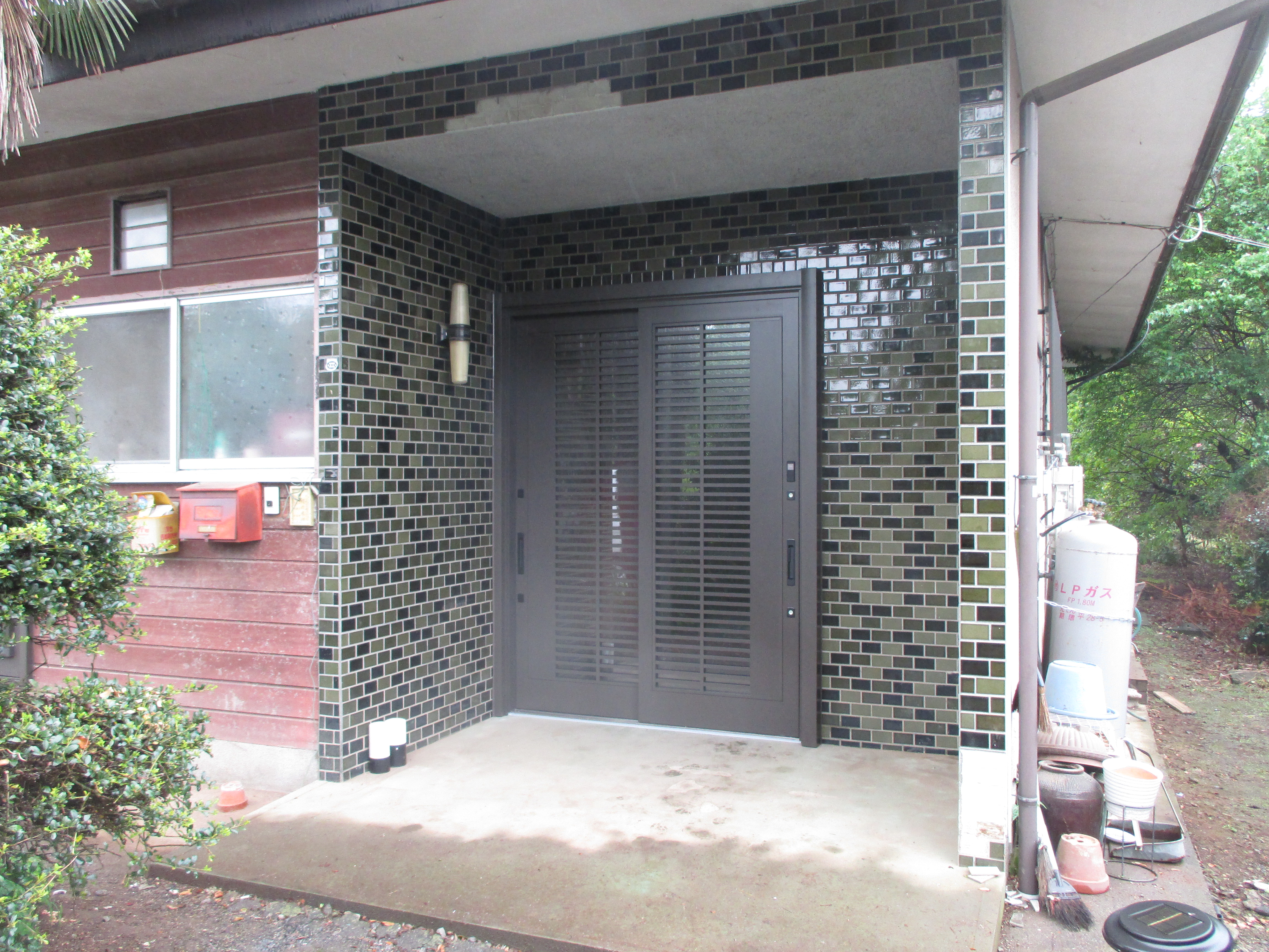 玄関の引違戸を交換しました。LIXILのリシェントで施工しました。外壁のタイルを壊すことなく施工が可能です。玄関と勝手口を含めて一日で施工完了しました。