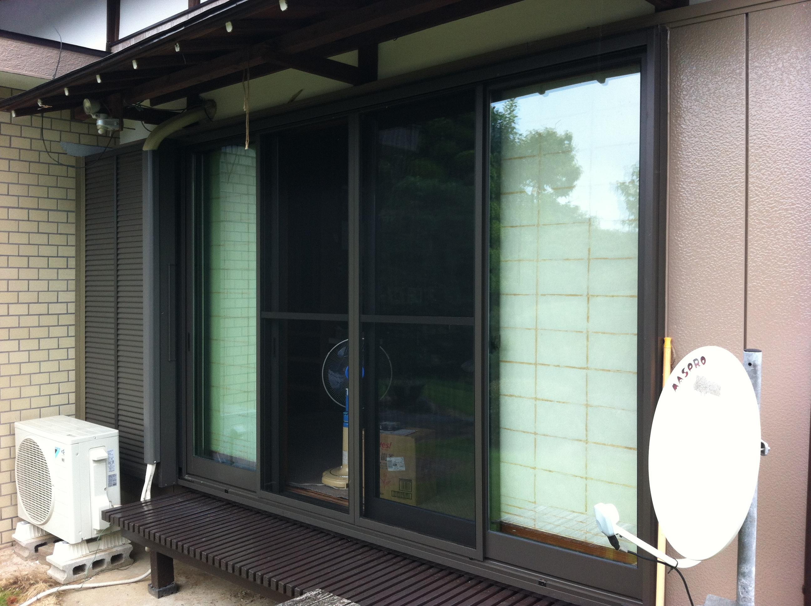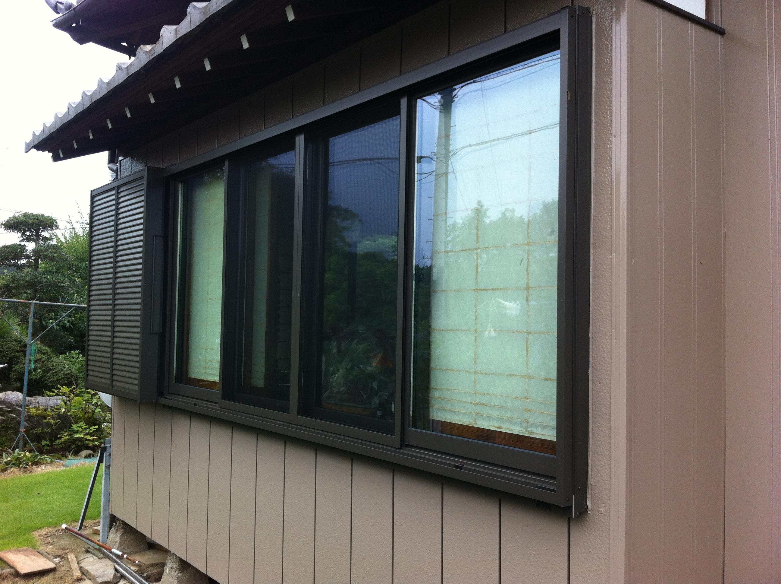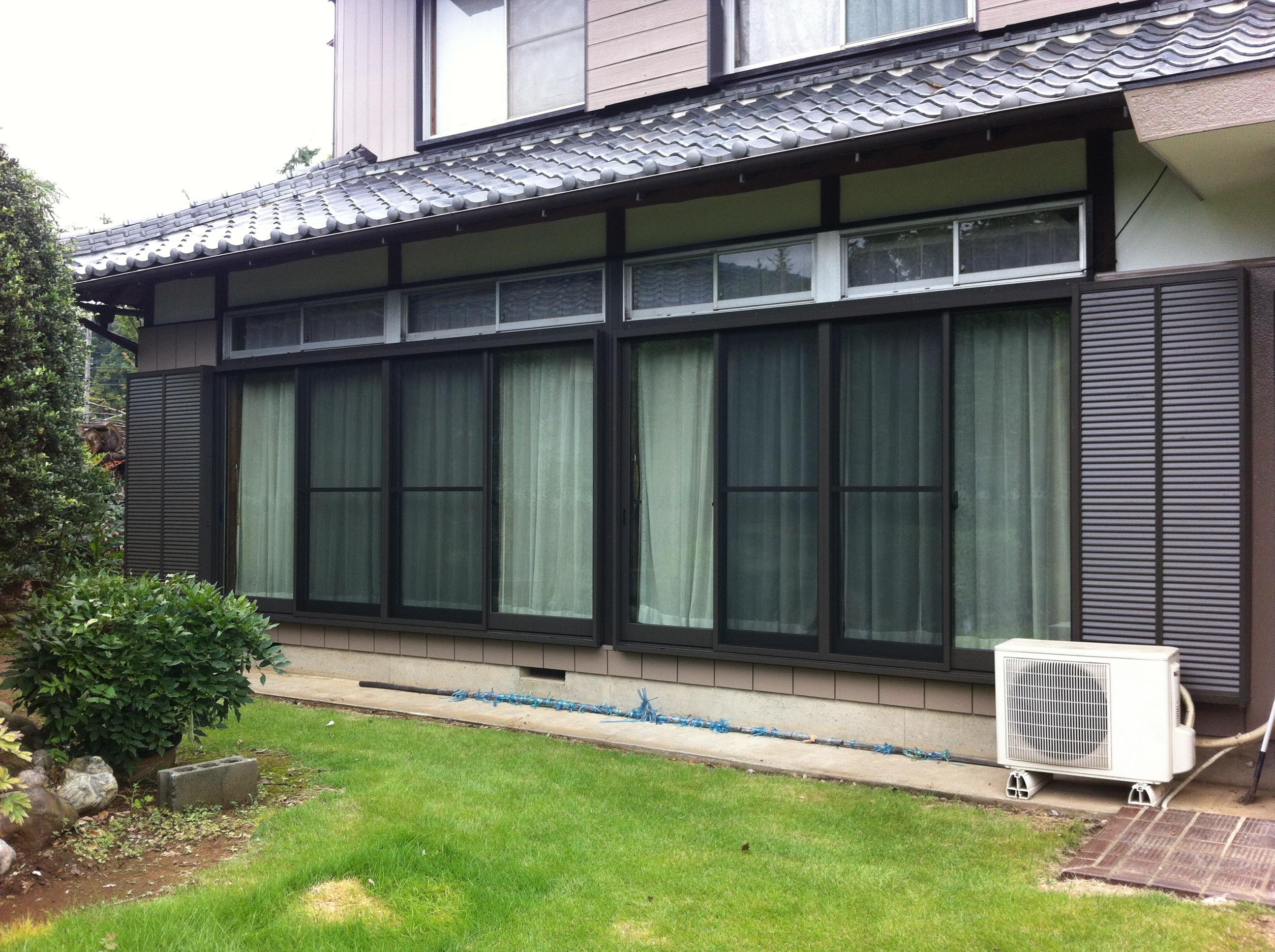 片側収納だった雨戸を両脇のスペースを利用して分けました。 新しい雨戸はスムーズに収納できます。 また、結露や寒さ対策としてシングルガラスをペアガラスに交換。 玄関ドアはタイルを壊さず豪華な両袖付きに交換しました。