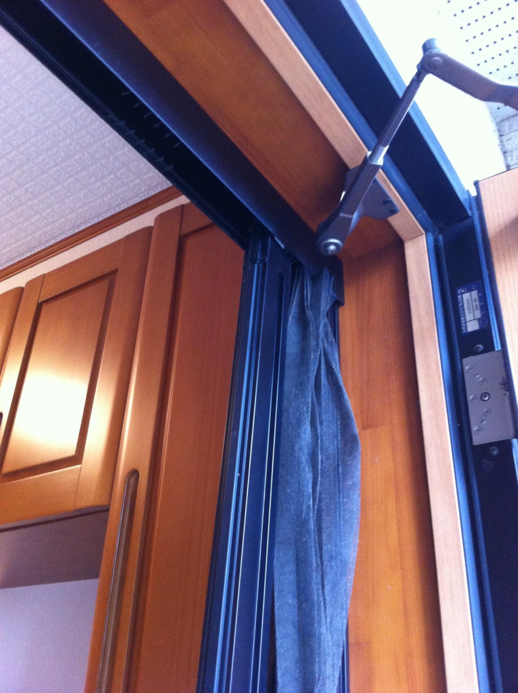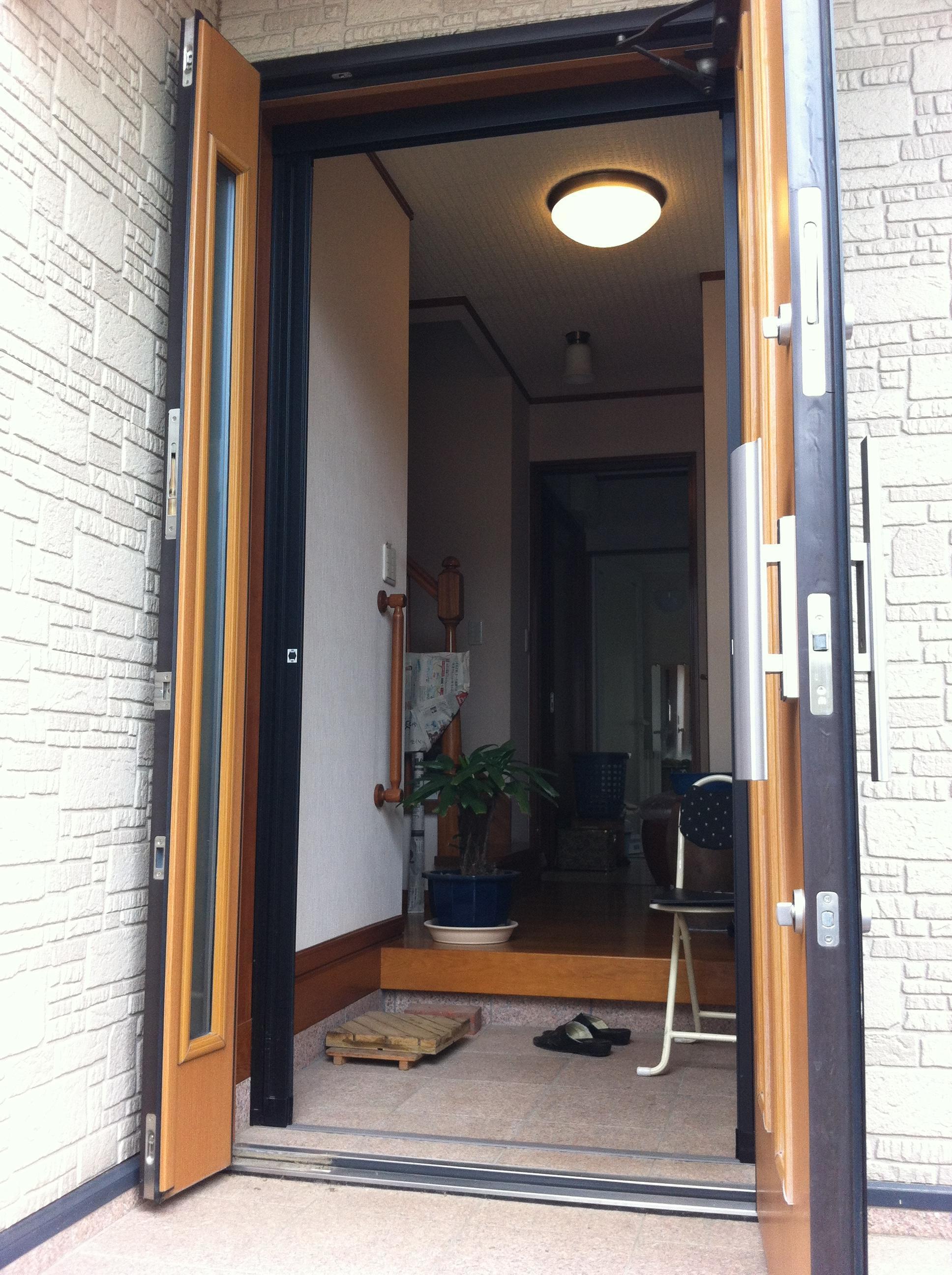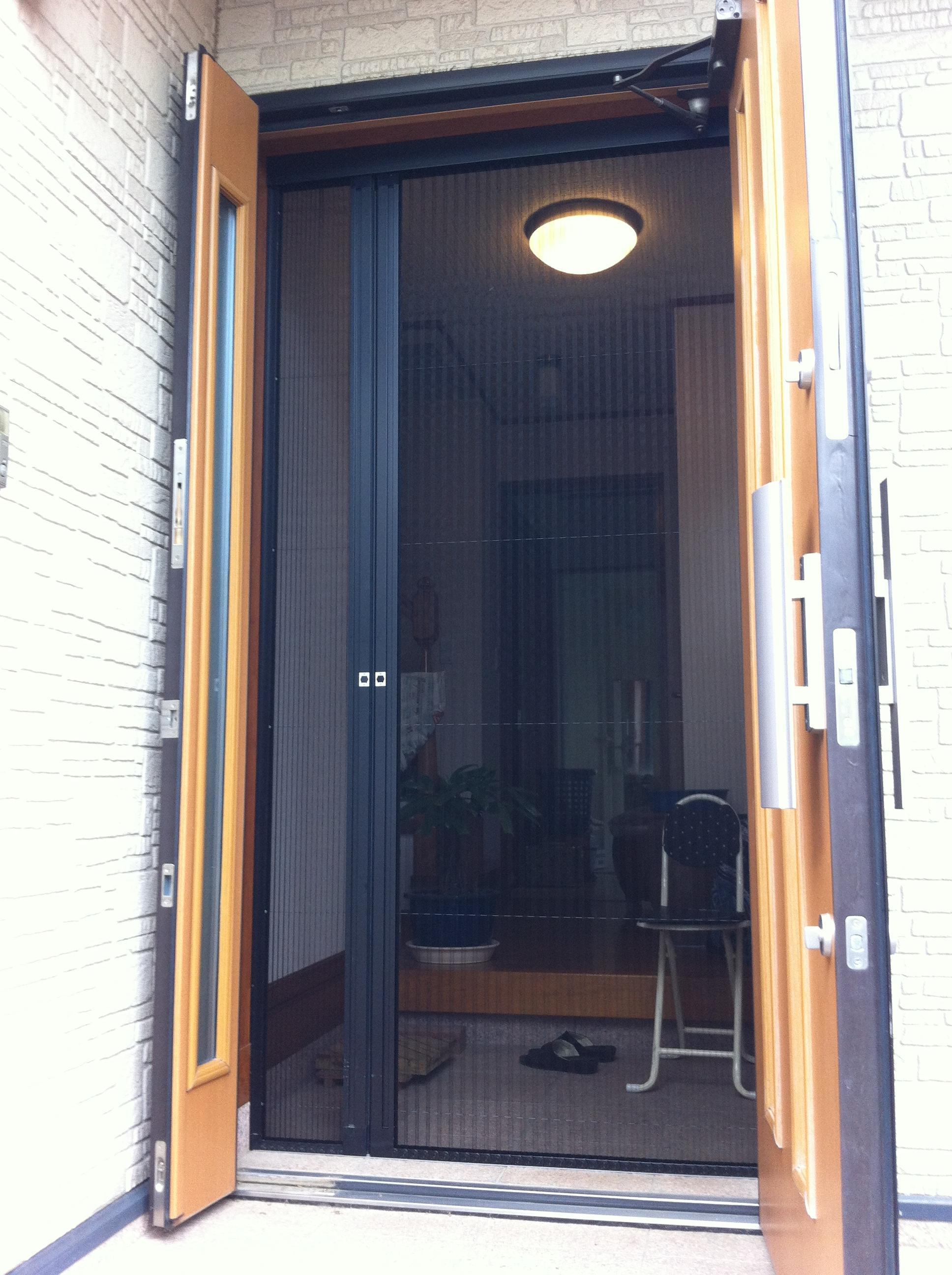 玄関用の網戸を交換しました。普段使用しないときは、収納しております。親子玄関ドアにも対応可能です。