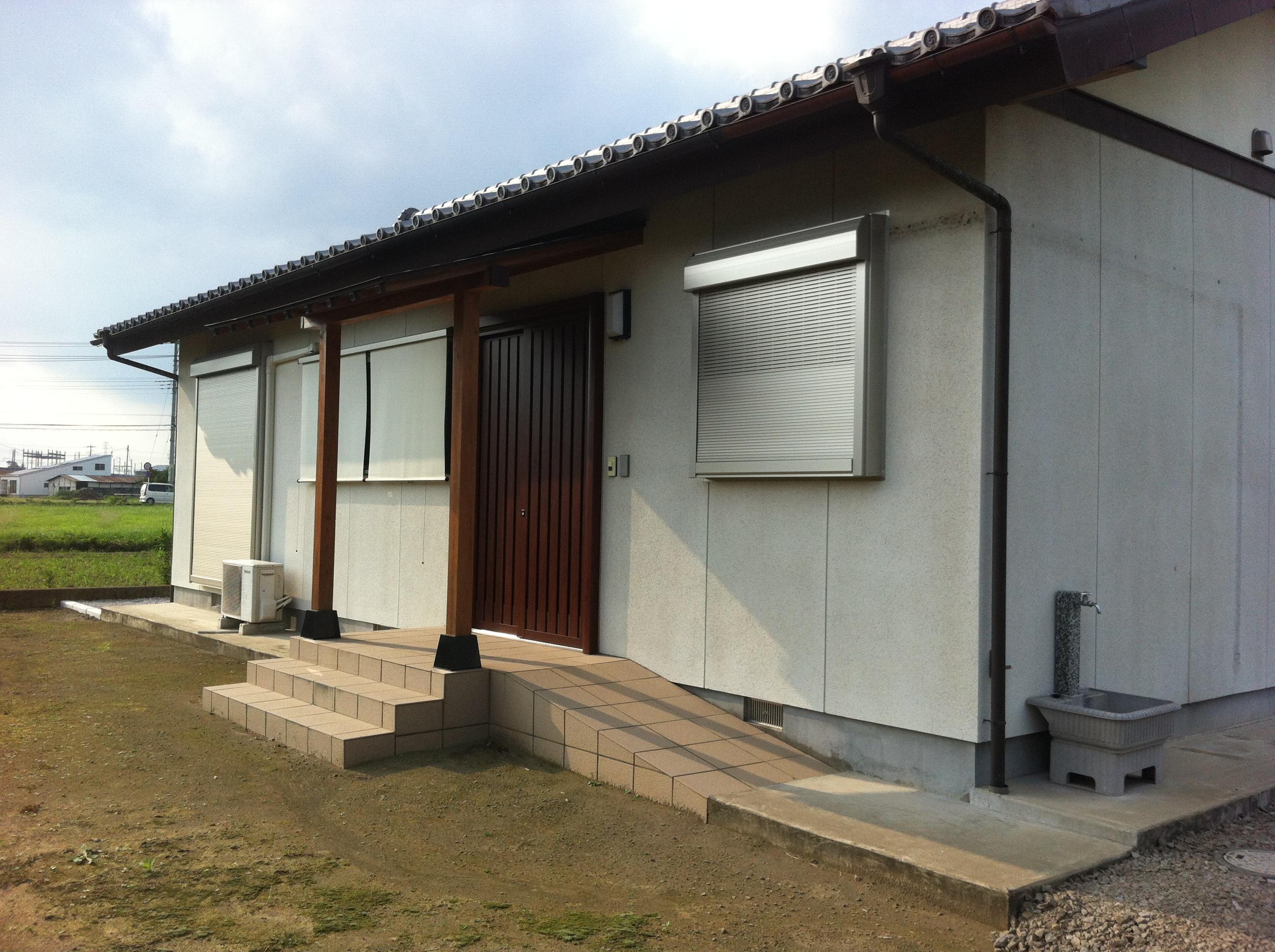 リフォームシャッター2か所と後付けシェード1か所、施工しました。雨戸の戸袋は撤去後、外壁補修してリフォームシャッターを施工しています。