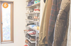 和室の押入れだったスペースは、奥行き約2.6mもある広大なウォークインクローゼットに。3分の2をシューズルームに、3分1はコートをかけるクローゼットに充てています。