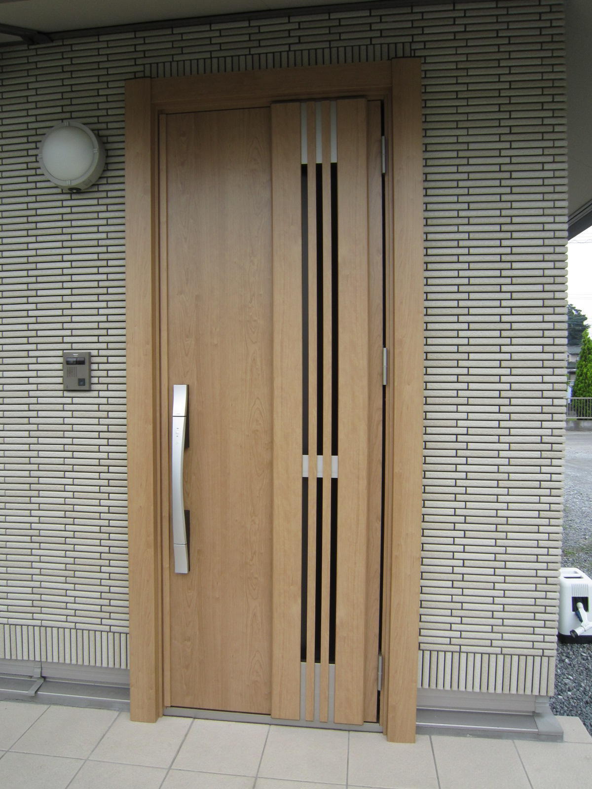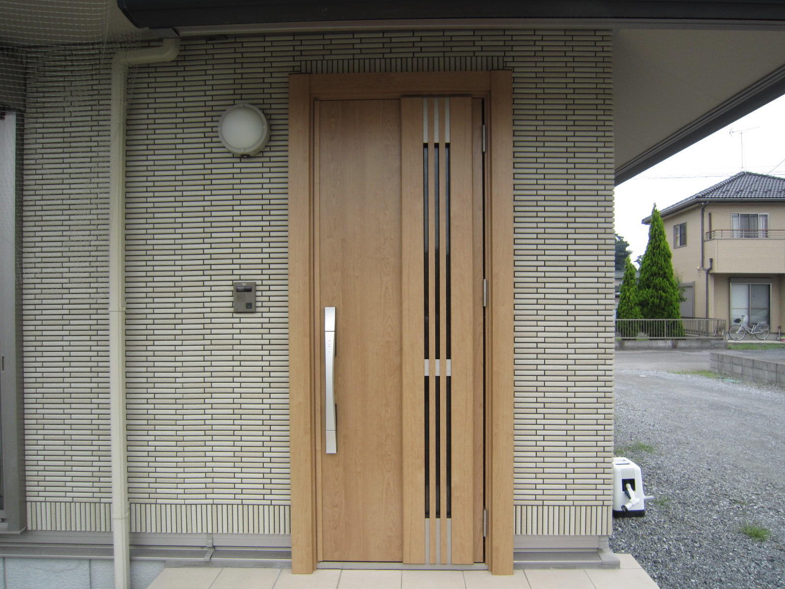 古くなった玄関ドアをLIXIL一押しのリシェントへ交換。今までが濃い茶系色でしたが、明るい色へ変更しました。リシェントはカバー工法になる為、室内外の壁も工事する必要がなく、短い工期で御施主様にも喜んで頂けました。