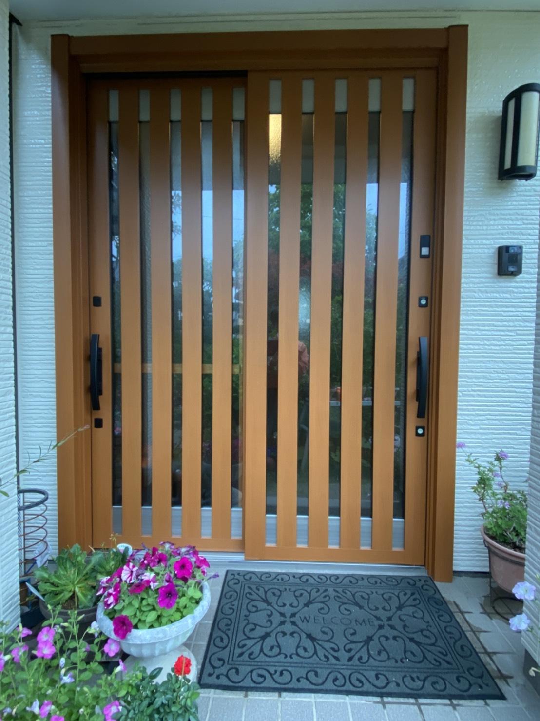 今まではアルミ単色だったが木目調で室内建具とマッチした色合いが良かった。 横格子から縦格子になりお手入れもし易くなりました。