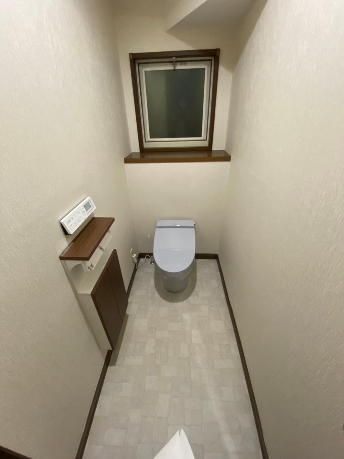 トイレが古くなったので交換。 壁埋込型の収納も古い為交換しました。