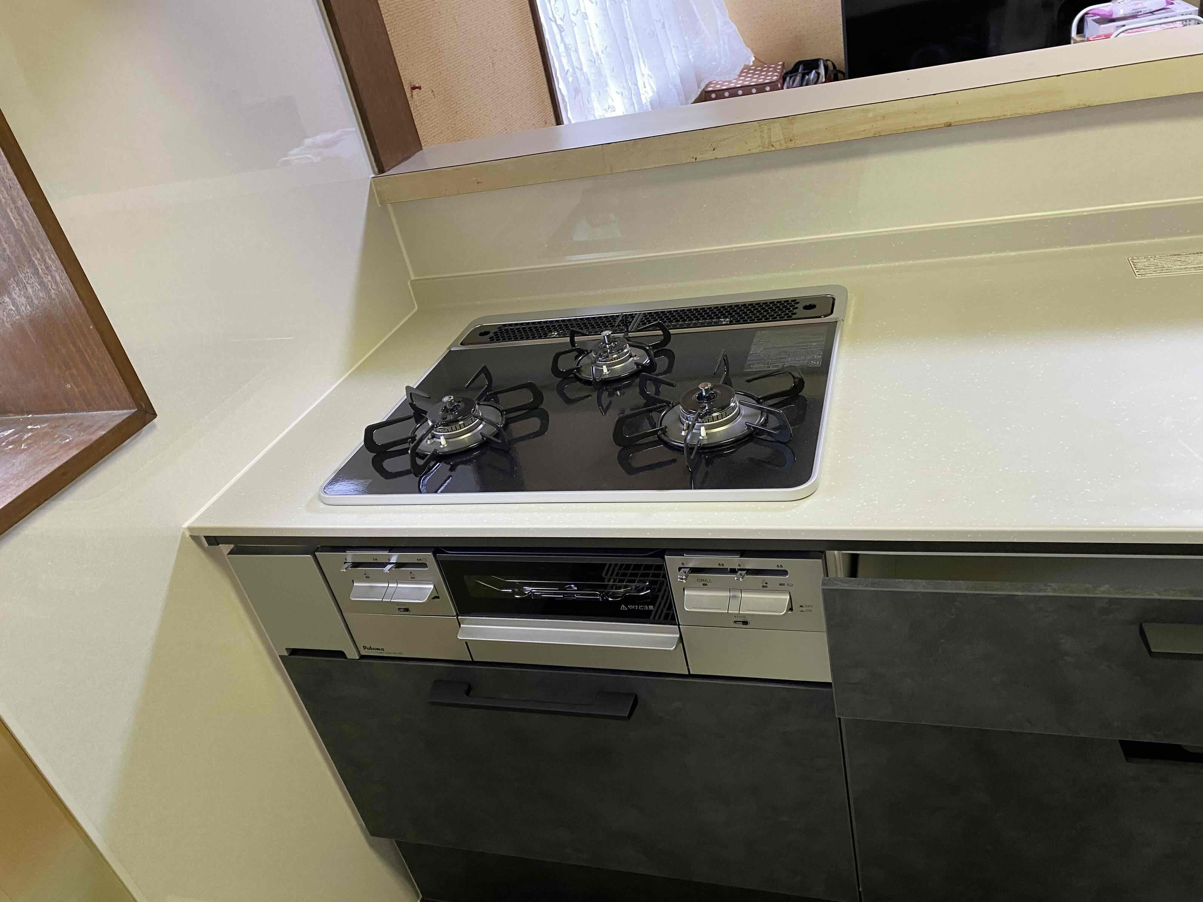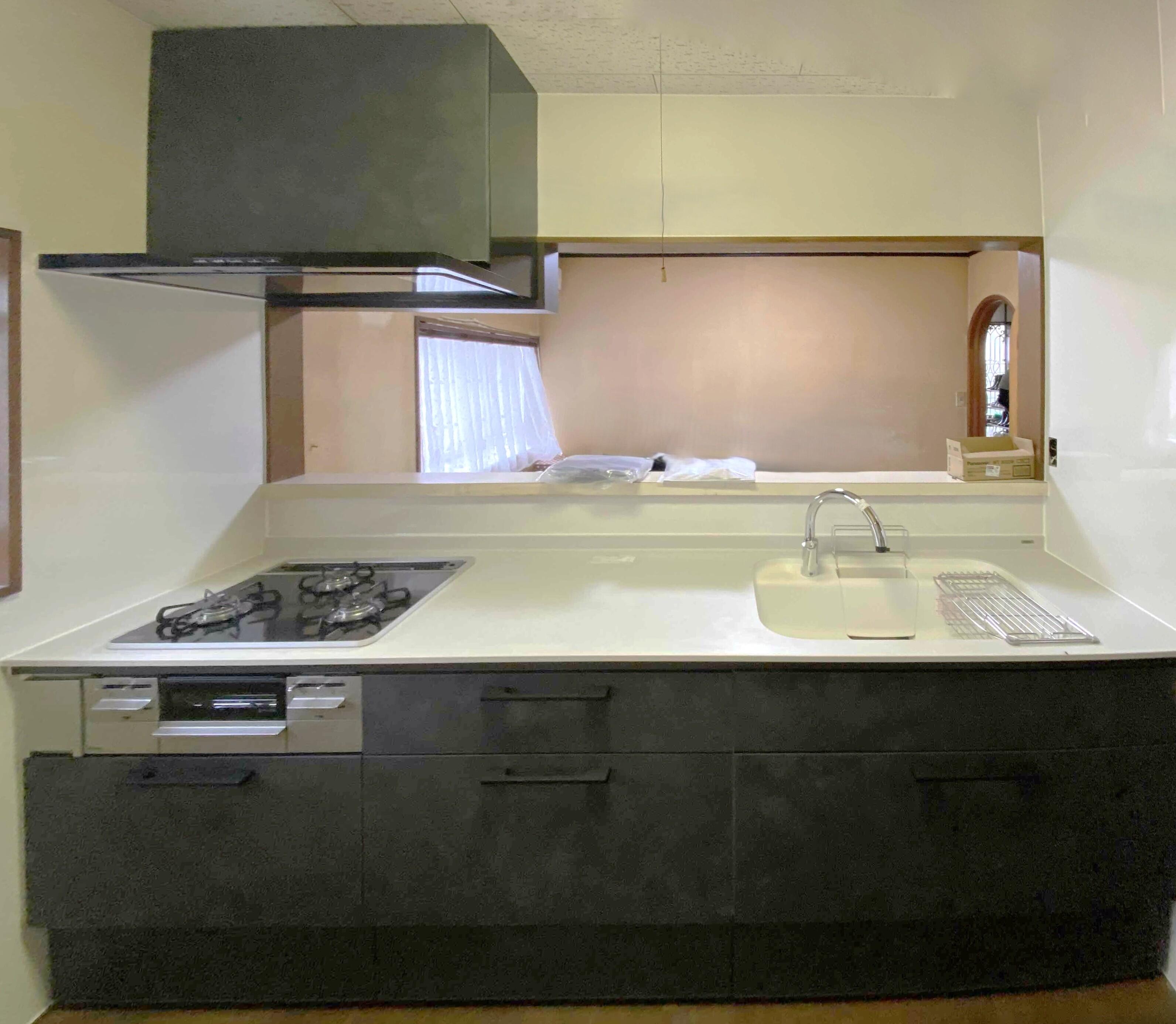 LIXILのシステムキッチン「シエラS」でリフォームしました。 ダークトーンの扉カラーが空間を引き締め、清潔感のあるワークトップが映える上品なキッチンに。 見た目も機能も両立した、家事ラクキッチンへ生まれ変わりました!